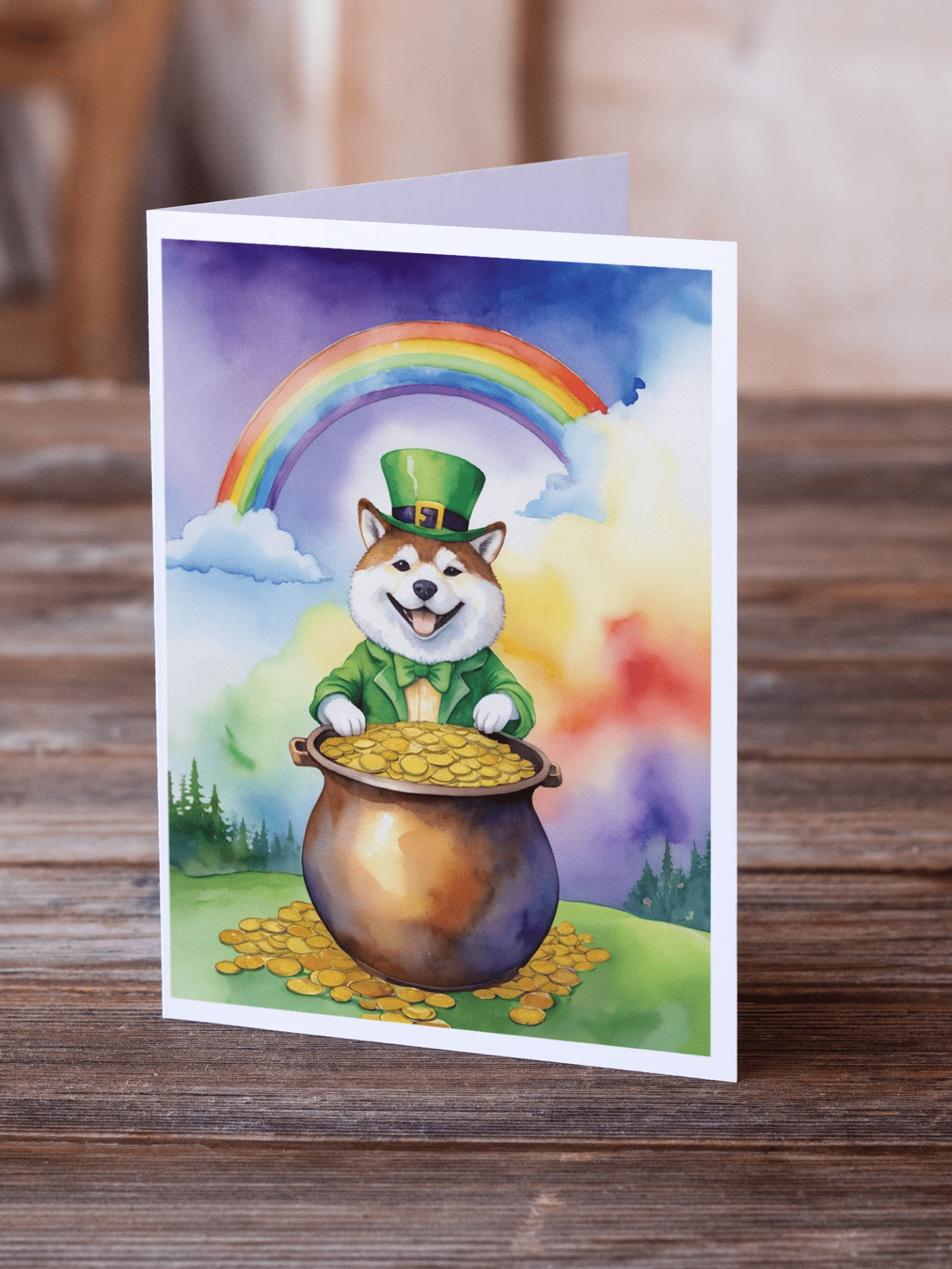 - Eight Akita-themed greeting cards with St Patrick's Day flair