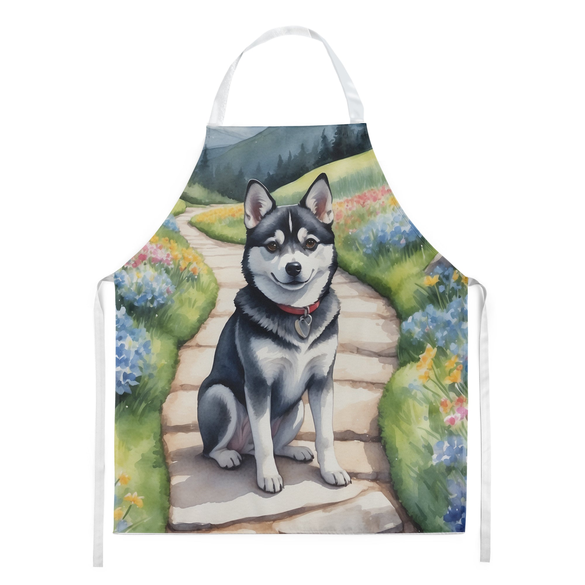Apron featuring breed specific Alaskan Klee Kai artwork. Elevate your cooking, baking, and grilling experiences with our versatile Kitchen or BBQ Apron. This Bib Style apron isn't just limited to culinary activities - it also serves as an excellent baking apron, artist apron, server apron, gardening apron, or even a dog grooming apron. The apron showcases vibrant full-color artwork contributed by one of our talented artists, bringing a dash of style to your daily tasks. With dimensions of approximately 27"W x 30"H, it provides ample coverage to protect your clothing from spills and splashes. Our apron is meticulously crafted from 100% Ultra Spun Polyester, known for its durability and lightweight nature. The apron comes with white tie straps, ensuring a comfortable and adjustable fit for all. It's a perfect choice for kitchen apron enthusiasts, whether you are a woman or a man. Designed for easy maintenance, this apron is fully machine washable. The quick-drying polyester material actively reduces staining, keeping your apron looking fresh and new for longer. Our beautifully designed apron isn't just a functional kitchen accessory - it's a fashion statement in the culinary world!