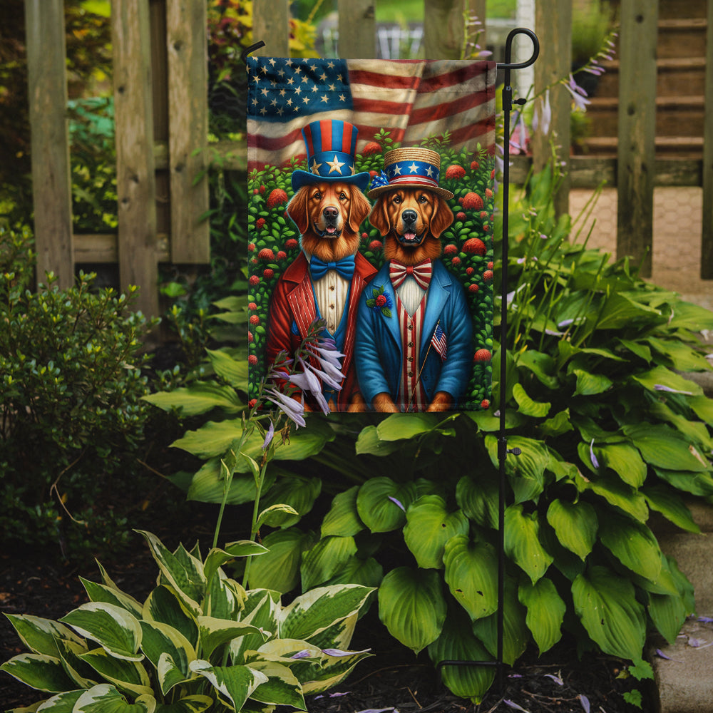 Garden Flag featuring breed specific Chesapeake Bay Retriever artwork. Enhance the beauty of your garden, patio, or yard with Caroline's Treasures Decorative Garden Flag, proudly made in the USA. Crafted from two pieces of thick, double-sided polyester fabric, this 2-ply garden flag is designed to withstand various weather conditions, making it water-resistant and weatherproof. Featuring correctly readable words on both sides, this garden flag offers a delightful visual experience from any angle. With its heavier weight, it stands out among other garden flags, ensuring stability and durability even in wind, rain, and snow. Measuring approximately 11 1/4 inches by 15 1/2 inches, this flag allows you to personalize your outdoor decor. It comes with a 1 1/2-inch sleeve sewn in, allowing easy attachment to any standard garden flag stand or garden size porch hanger (sold separately). Make a statement in your outdoor space with Caroline's Treasures Decorative Garden Flag, a vibrant and high-quality flag that adds color and personality to your surroundings. Proudly made in the USA, it's a symbol of quality craftsmanship and attention to detail.