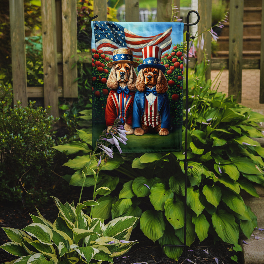 Garden Flag featuring breed specific Cocker Spaniel artwork. Enhance the beauty of your garden, patio, or yard with Caroline's Treasures Decorative Garden Flag, proudly made in the USA. Crafted from two pieces of thick, double-sided polyester fabric, this 2-ply garden flag is designed to withstand various weather conditions, making it water-resistant and weatherproof. Featuring correctly readable words on both sides, this garden flag offers a delightful visual experience from any angle. With its heavier weight, it stands out among other garden flags, ensuring stability and durability even in wind, rain, and snow. Measuring approximately 11 1/4 inches by 15 1/2 inches, this flag allows you to personalize your outdoor decor. It comes with a 1 1/2-inch sleeve sewn in, allowing easy attachment to any standard garden flag stand or garden size porch hanger (sold separately). Make a statement in your outdoor space with Caroline's Treasures Decorative Garden Flag, a vibrant and high-quality flag that adds color and personality to your surroundings. Proudly made in the USA, it's a symbol of quality craftsmanship and attention to detail.