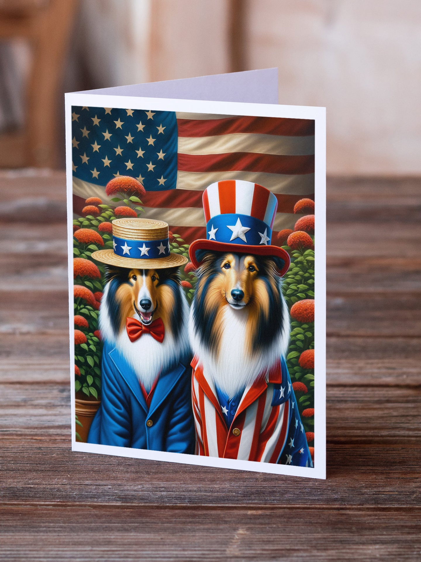 Greeting Cards Pack of 8 featuring breed specific Collie artwork. Celebrate special moments with Caroline's Treasures Printed Greeting Card Pack. This pack includes eight beautifully folded 5x7 cards, accompanied by eight matching white envelopes. With blank interiors, these cards provide ample space for your personalized messages and heartfelt holiday greetings. Each card features captivating full-color artwork, meticulously printed in our facility on high-quality 80 lb cover stock or 216 GSM. The super smooth finish of the white cards enhances the visual impact of the artwork, creating a truly stunning presentation. Designed by our talented in-house artists or licensed artists, the artwork on these cards showcases their creativity and attention to detail. From vibrant illustrations to captivating designs, each card tells its own unique story. Whether it's for birthdays, anniversaries, holidays, or any special occasion, Caroline's Treasures Greeting Card Pack is the perfect way to convey your heartfelt sentiments. Share joy, love, and warm wishes with these exquisite cards and make every moment unforgettable.