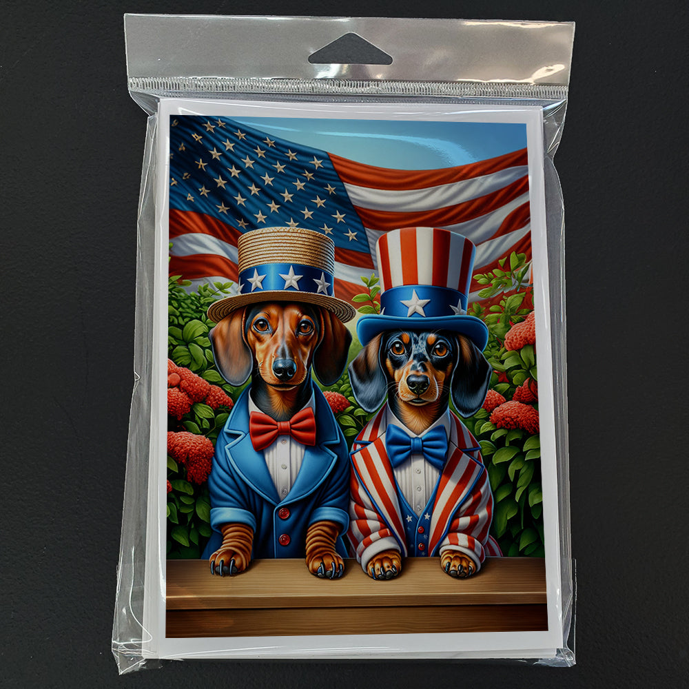 Greeting Cards Pack of 8 featuring breed specific Dachshund artwork. Celebrate special moments with Caroline's Treasures Printed Greeting Card Pack. This pack includes eight beautifully folded 5x7 cards, accompanied by eight matching white envelopes. With blank interiors, these cards provide ample space for your personalized messages and heartfelt holiday greetings. Each card features captivating full-color artwork, meticulously printed in our facility on high-quality 80 lb cover stock or 216 GSM. The super smooth finish of the white cards enhances the visual impact of the artwork, creating a truly stunning presentation. Designed by our talented in-house artists or licensed artists, the artwork on these cards showcases their creativity and attention to detail. From vibrant illustrations to captivating designs, each card tells its own unique story. Whether it's for birthdays, anniversaries, holidays, or any special occasion, Caroline's Treasures Greeting Card Pack is the perfect way to convey your heartfelt sentiments. Share joy, love, and warm wishes with these exquisite cards and make every moment unforgettable.