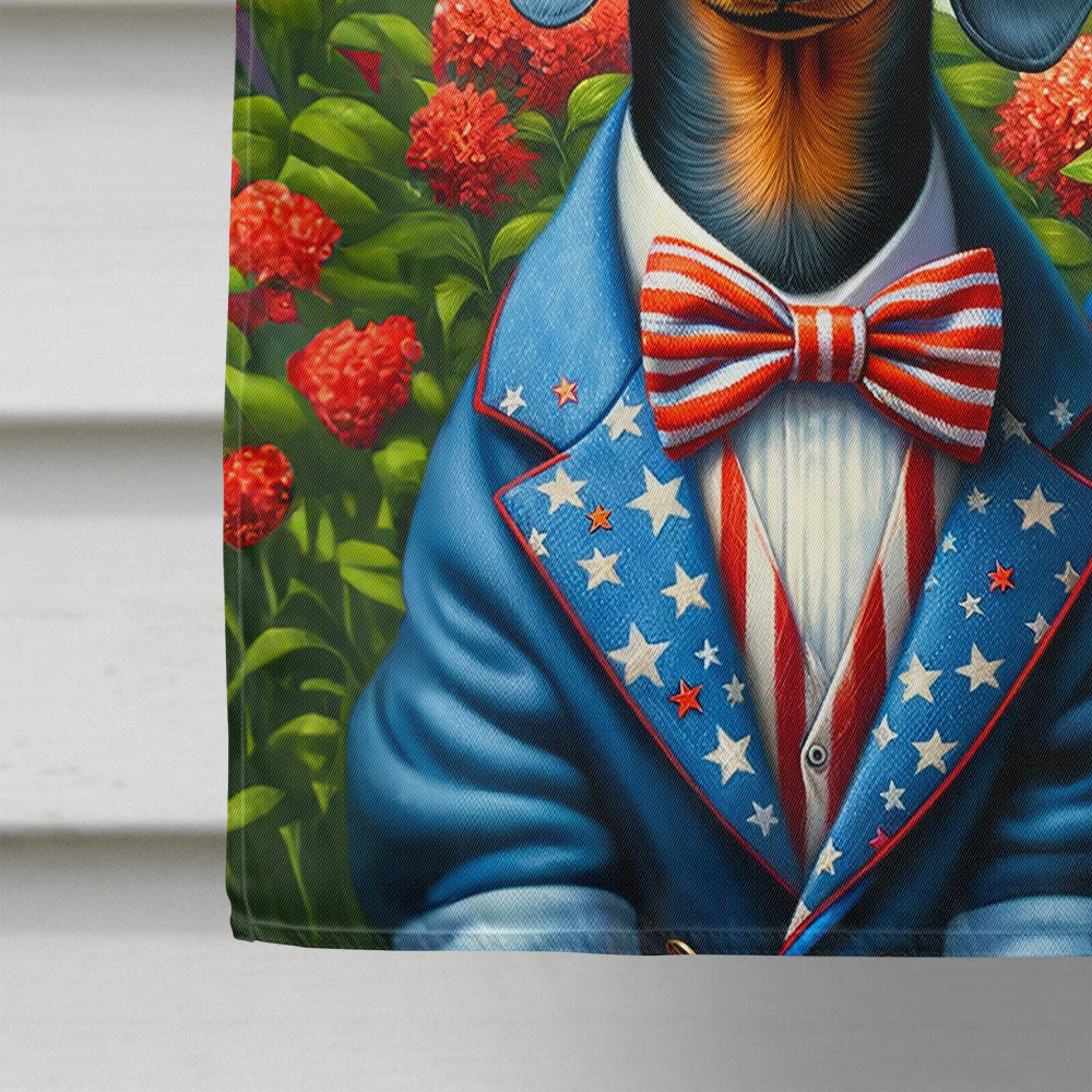 House Flag featuring breed specific Dachshund artwork. Presenting our Heavy Duty Polyester House Size Decorative Sleeve Pole Flag, a vibrant addition to enhance the aesthetic appeal of your home. This large decorative flag, measuring approximately 28 x 40 inches, offers ample coverage and visibility. Each flag is meticulously sewn and made individually, ensuring a unique piece that may slightly vary in size. It's a sleeve pole flag, designed to fit a standard decorative flag pole effortlessly. Please note that the flag pole and bracket are not included and should be purchased separately. What sets our flag apart is its dual-sided print. The design is mirrored on both sides of the fabric, allowing for uniform visibility regardless of the angle. Printed in full color, our flag showcases vibrant hues that truly stand out. To ensure lasting vibrancy and durability, the dyes are heat-set into the fabric. This ensures your flag remains bright and captivating through various weather conditions. Elevate the look of your home with our Heavy Duty Polyester House Size Decorative Sleeve Pole Flag!
