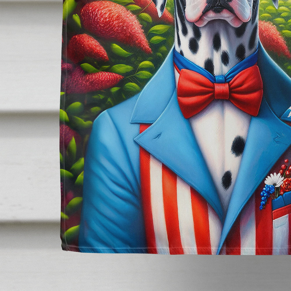 House Flag featuring breed specific Dalmatian artwork. Presenting our Heavy Duty Polyester House Size Decorative Sleeve Pole Flag, a vibrant addition to enhance the aesthetic appeal of your home. This large decorative flag, measuring approximately 28 x 40 inches, offers ample coverage and visibility. Each flag is meticulously sewn and made individually, ensuring a unique piece that may slightly vary in size. It's a sleeve pole flag, designed to fit a standard decorative flag pole effortlessly. Please note that the flag pole and bracket are not included and should be purchased separately. What sets our flag apart is its dual-sided print. The design is mirrored on both sides of the fabric, allowing for uniform visibility regardless of the angle. Printed in full color, our flag showcases vibrant hues that truly stand out. To ensure lasting vibrancy and durability, the dyes are heat-set into the fabric. This ensures your flag remains bright and captivating through various weather conditions. Elevate the look of your home with our Heavy Duty Polyester House Size Decorative Sleeve Pole Flag!