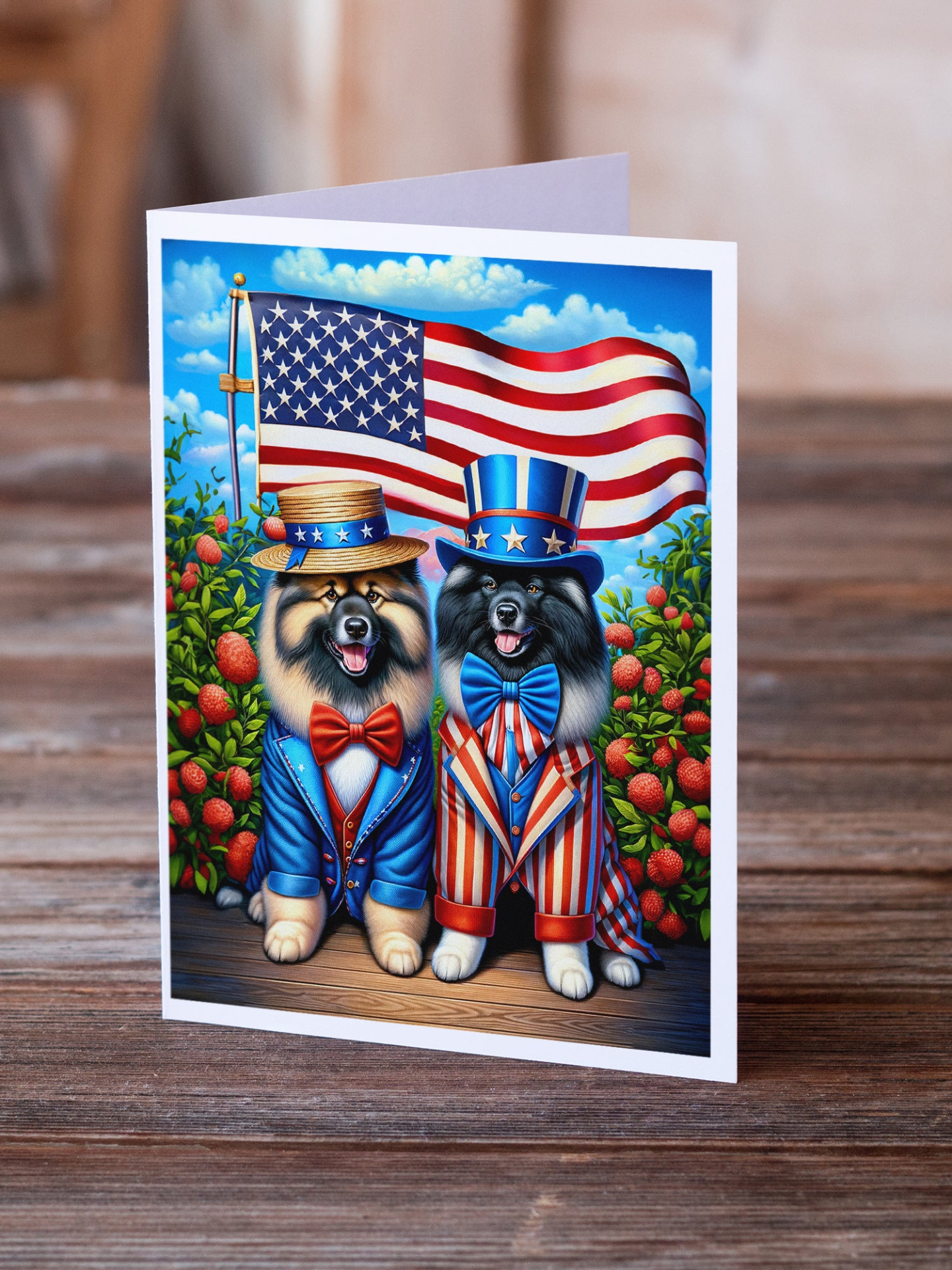 Greeting Cards Pack of 8 featuring breed specific Keeshond artwork. Celebrate special moments with Caroline's Treasures Printed Greeting Card Pack. This pack includes eight beautifully folded 5x7 cards, accompanied by eight matching white envelopes. With blank interiors, these cards provide ample space for your personalized messages and heartfelt holiday greetings. Each card features captivating full-color artwork, meticulously printed in our facility on high-quality 80 lb cover stock or 216 GSM. The super smooth finish of the white cards enhances the visual impact of the artwork, creating a truly stunning presentation. Designed by our talented in-house artists or licensed artists, the artwork on these cards showcases their creativity and attention to detail. From vibrant illustrations to captivating designs, each card tells its own unique story. Whether it's for birthdays, anniversaries, holidays, or any special occasion, Caroline's Treasures Greeting Card Pack is the perfect way to convey your heartfelt sentiments. Share joy, love, and warm wishes with these exquisite cards and make every moment unforgettable.