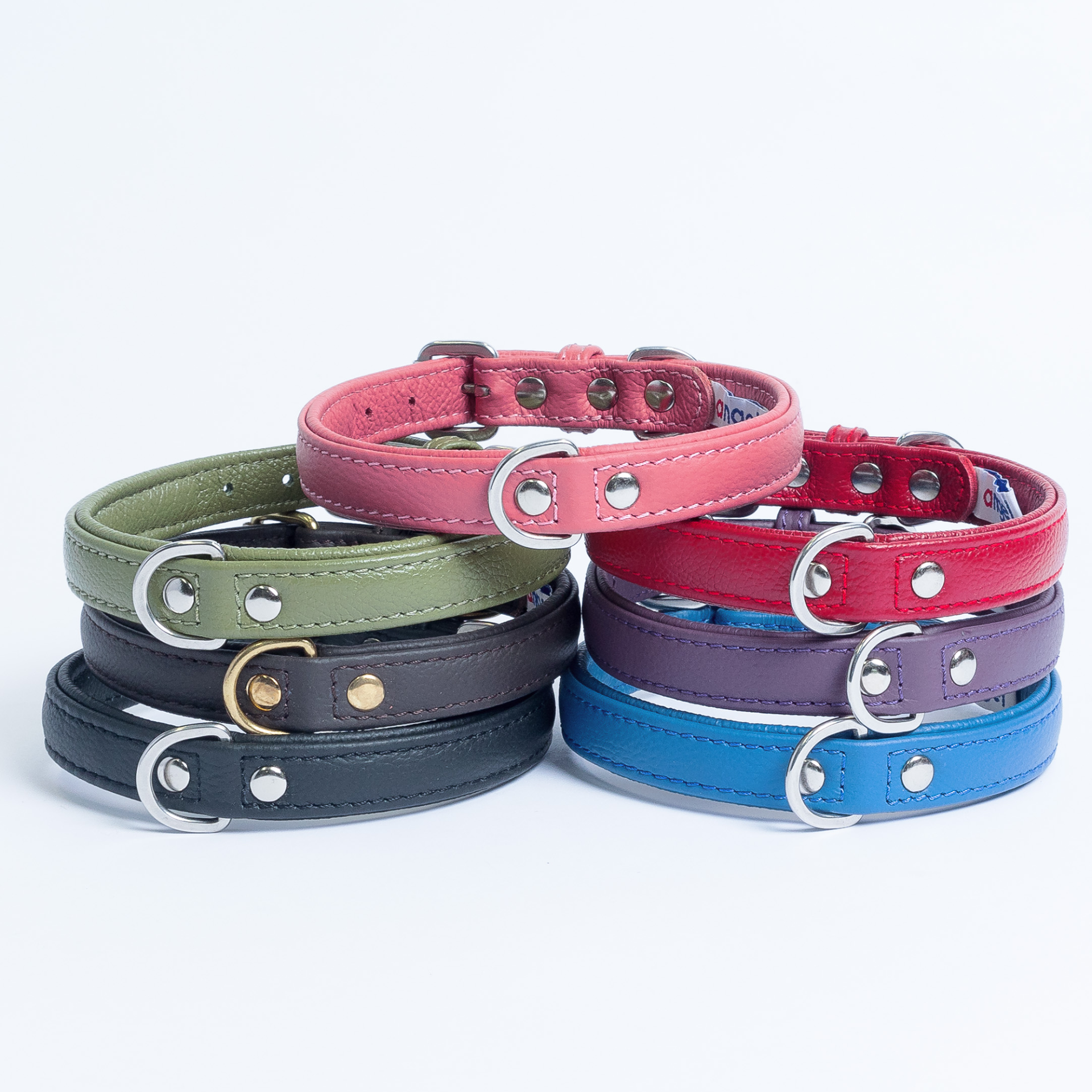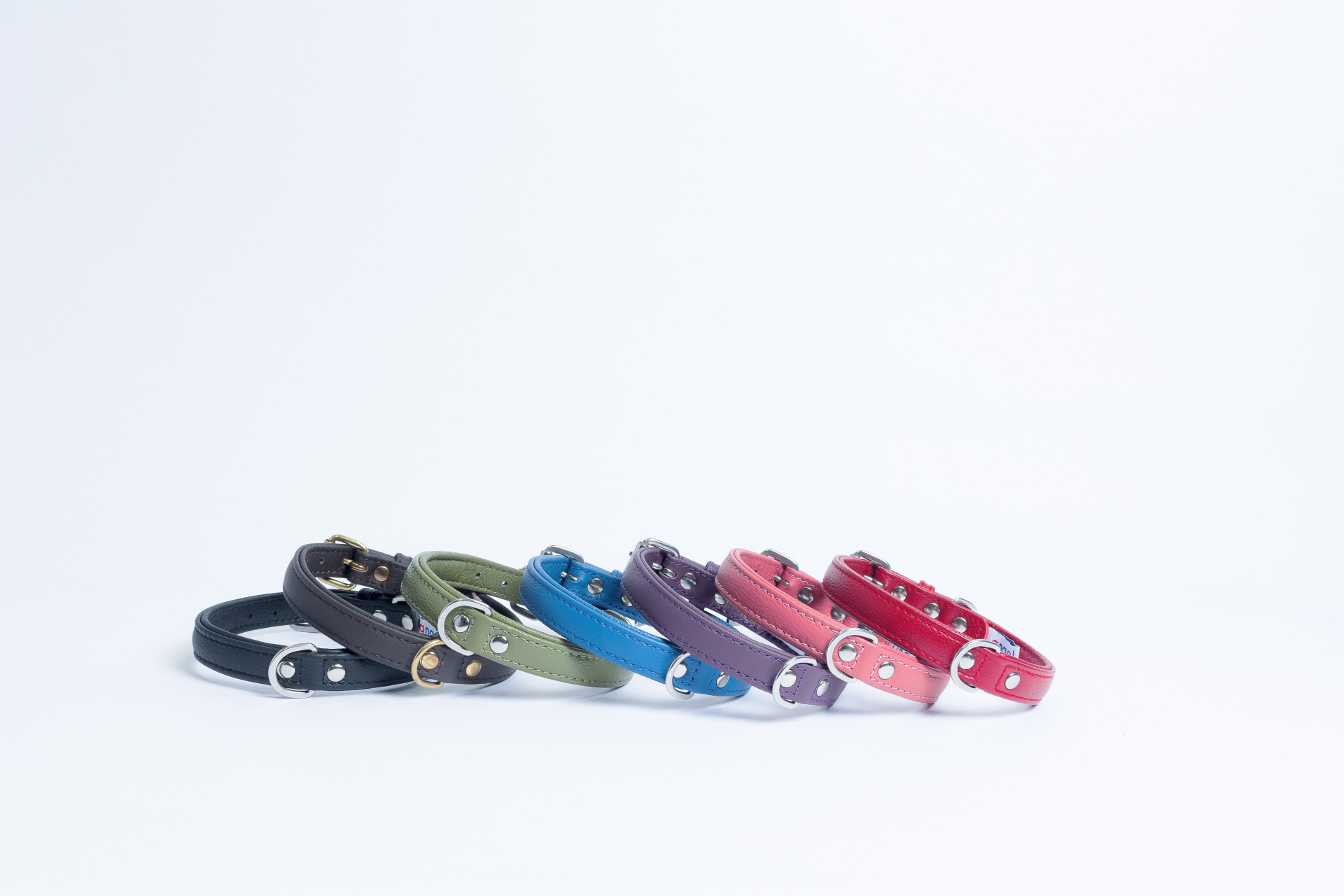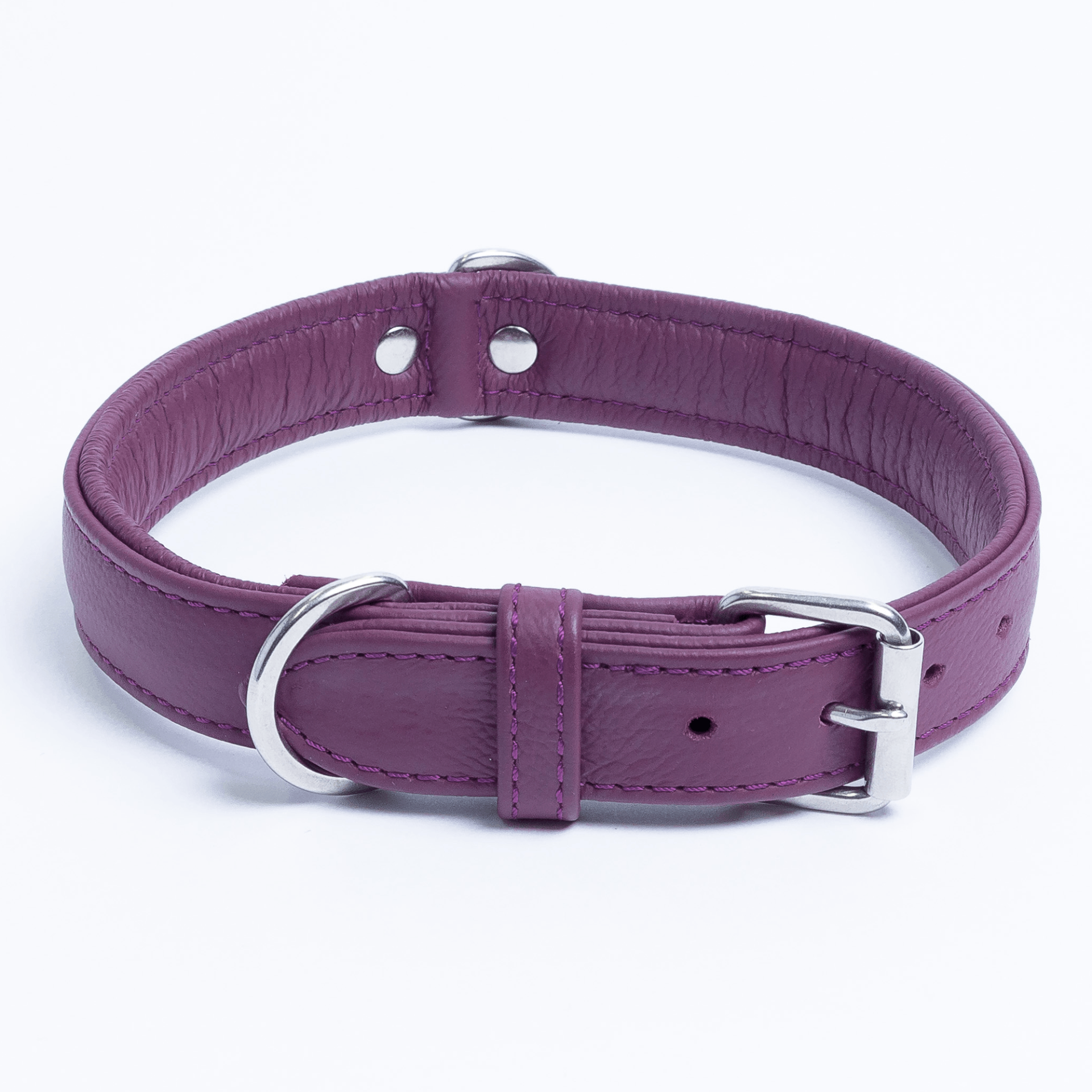 For those wanting to be a little more reserved, these solid colored padded collars are available in 7 different colors. Great quality for a great price. A centre D-Ring is present for maximum exposure & versatility. Made of super soft genuine leather and stainless steel hardware.