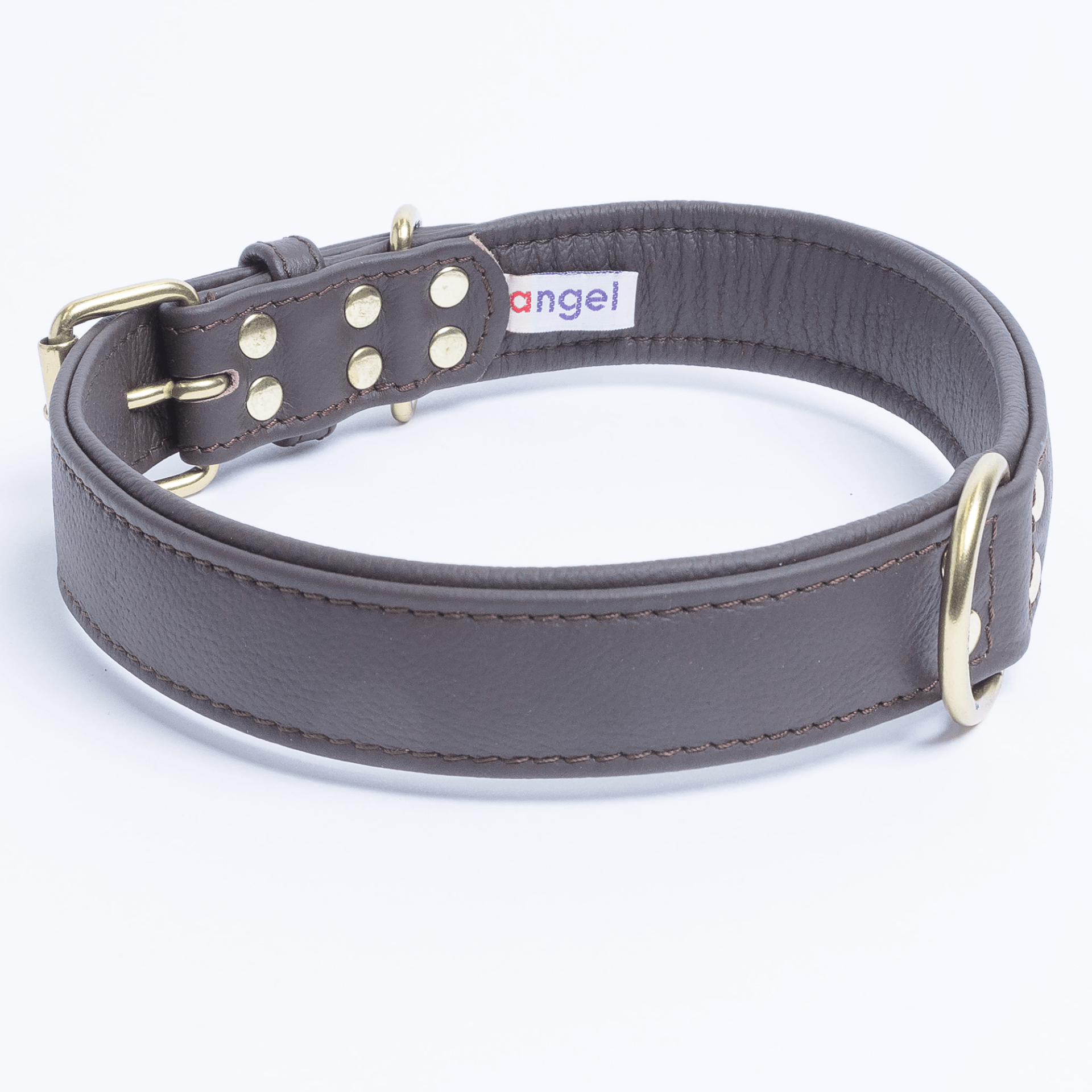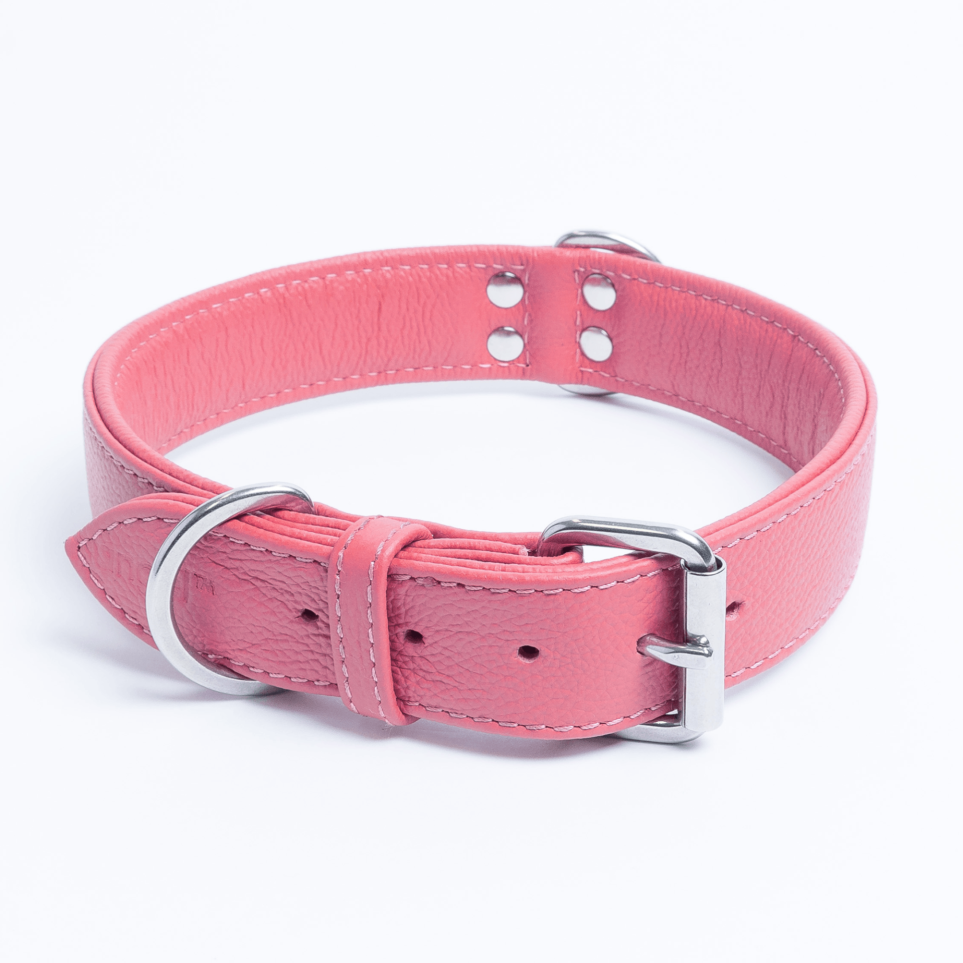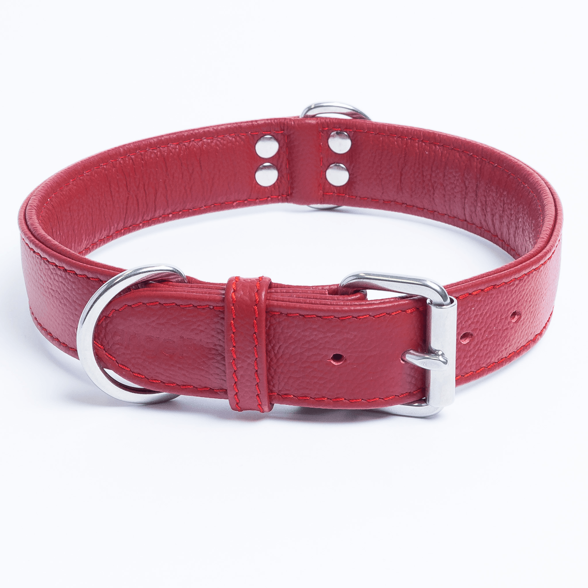 For those wanting to be a little more reserved, these solid colored padded collars are available in 7 different colors. Great quality for a great price. A centre D-Ring is present for maximum exposure & versatility. Made of super soft genuine leather and stainless steel hardware.