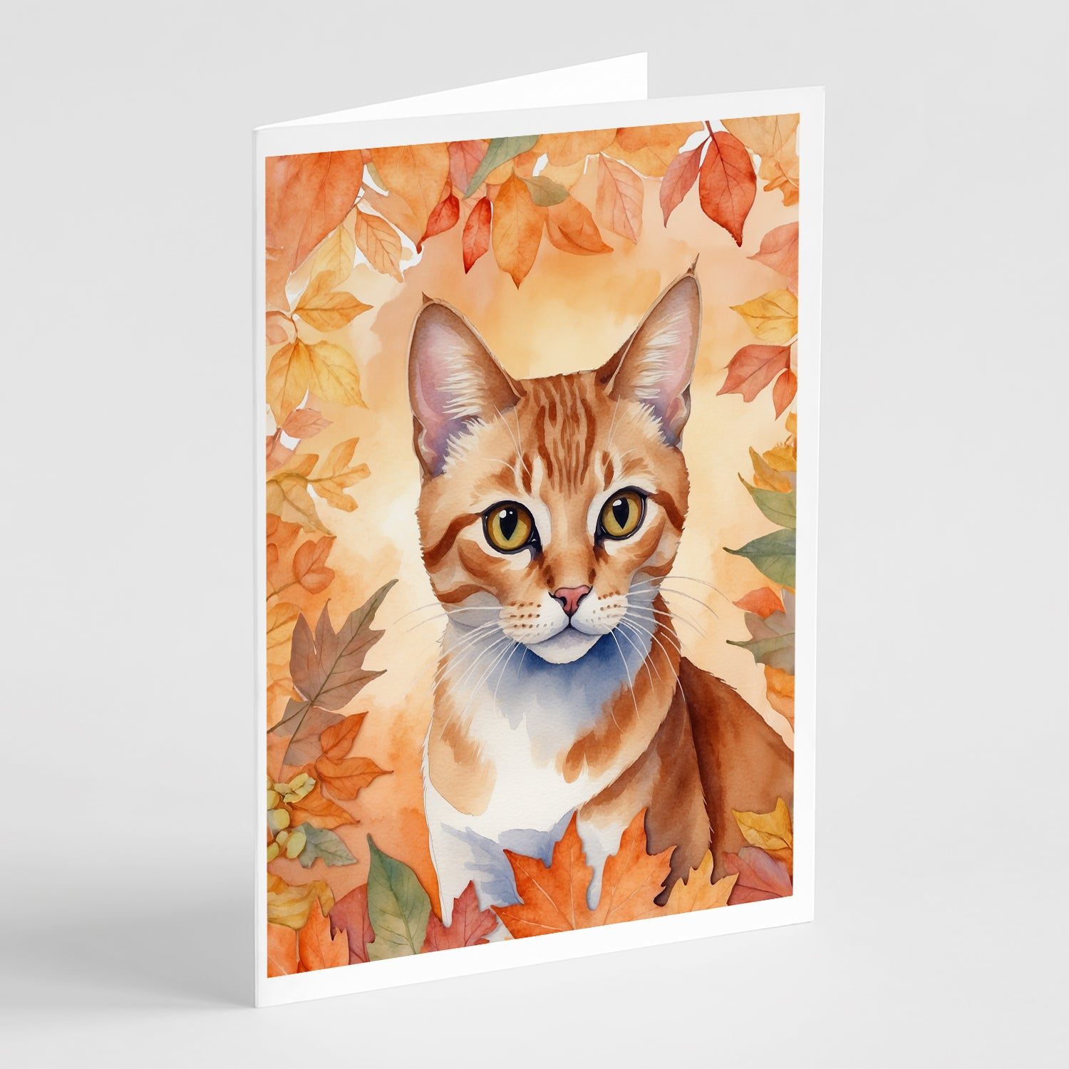 Arabian Mau Cat in Fall Leaves Greeting Cards Pack of 8