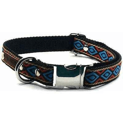 Treat your dog to the practical and stylish Athena Finnigan Dog Collar, designed for medium-sized dog breeds. Handmade with premium 100% cotton, this collar is both durable and fashionable. Features adjustable sizing, aluminium hardware, and the option for custom engraving on the buckle. Keep your furry friend looking fabulous every day with this unique collar.