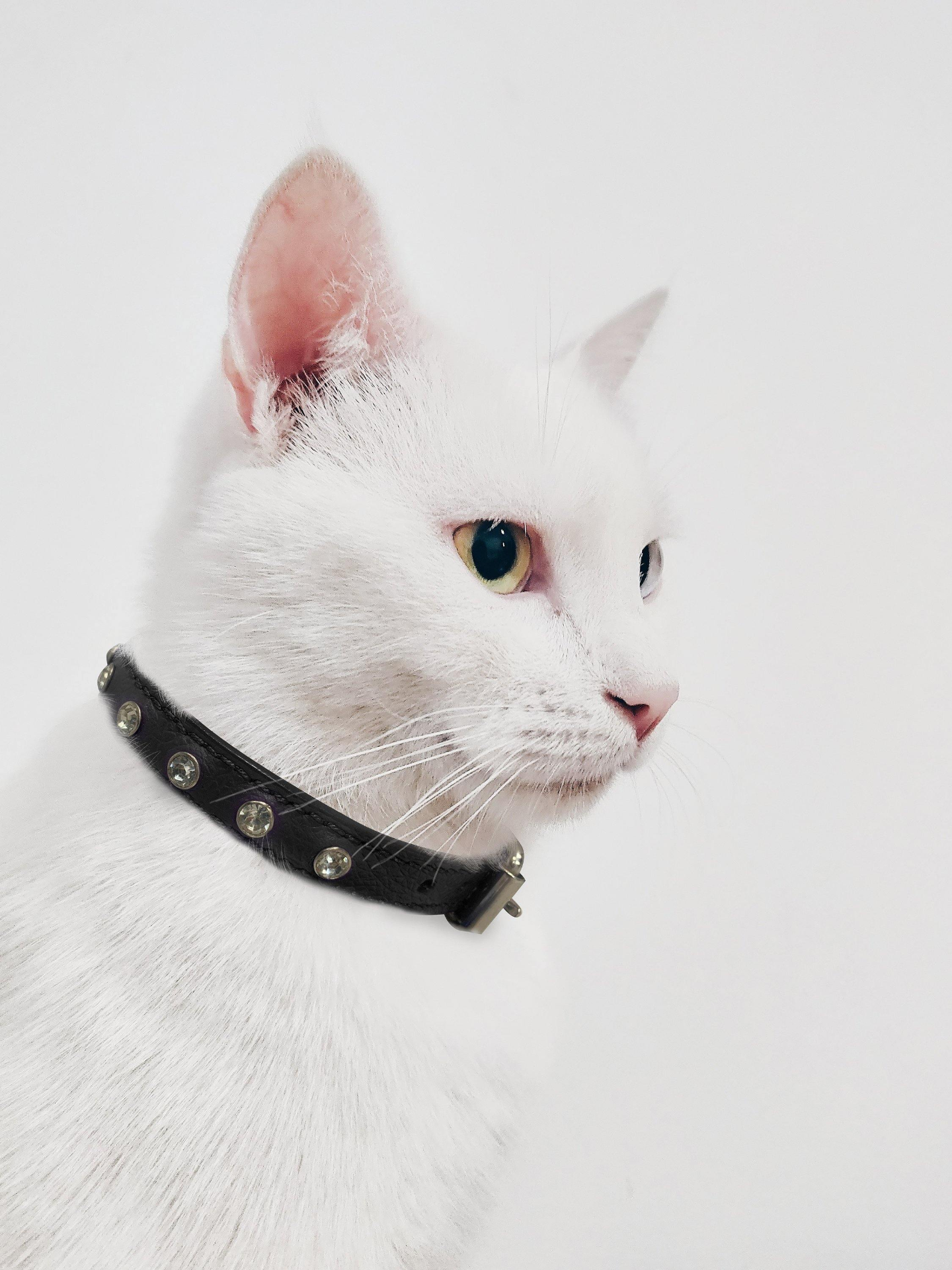 Give your stylish kitty (or tiny dog friend!) a dazzling upgrade with comfort, safety, and shimmer all in one. Crafted from 100% genuine leather, this lightweight collar is soft, flexible, and designed to keep your pet comfortable all day. Sparkling rhinestones are securely fastened to ensure long-lasting shine without falling out, while the built-in elastic breakaway feature and jingling bell provide added safety and peace of mind. Available in six vibrant colors and two sizes, this collar helps your fashionable feline make a serious impression—whether they’re striking a pose or lounging like royalty.
