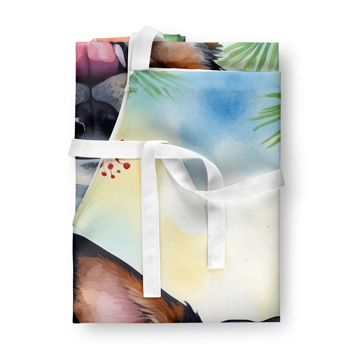 Apron featuring breed specific Australian Cattle Dog artwork. Elevate your cooking, baking, and grilling experiences with our versatile Kitchen or BBQ Apron. This Bib Style apron isn't just limited to culinary activities - it also serves as an excellent baking apron, artist apron, server apron, gardening apron, or even a dog grooming apron. The apron showcases vibrant full-color artwork contributed by one of our talented artists, bringing a dash of style to your daily tasks. With dimensions of approximately 27"W x 30"H, it provides ample coverage to protect your clothing from spills and splashes. Our apron is meticulously crafted from 100% Ultra Spun Polyester, known for its durability and lightweight nature. The apron comes with white tie straps, ensuring a comfortable and adjustable fit for all. It's a perfect choice for kitchen apron enthusiasts, whether you are a woman or a man. Designed for easy maintenance, this apron is fully machine washable. The quick-drying polyester material actively reduces staining, keeping your apron looking fresh and new for longer. Our beautifully designed apron isn't just a functional kitchen accessory - it's a fashion statement in the culinary world!