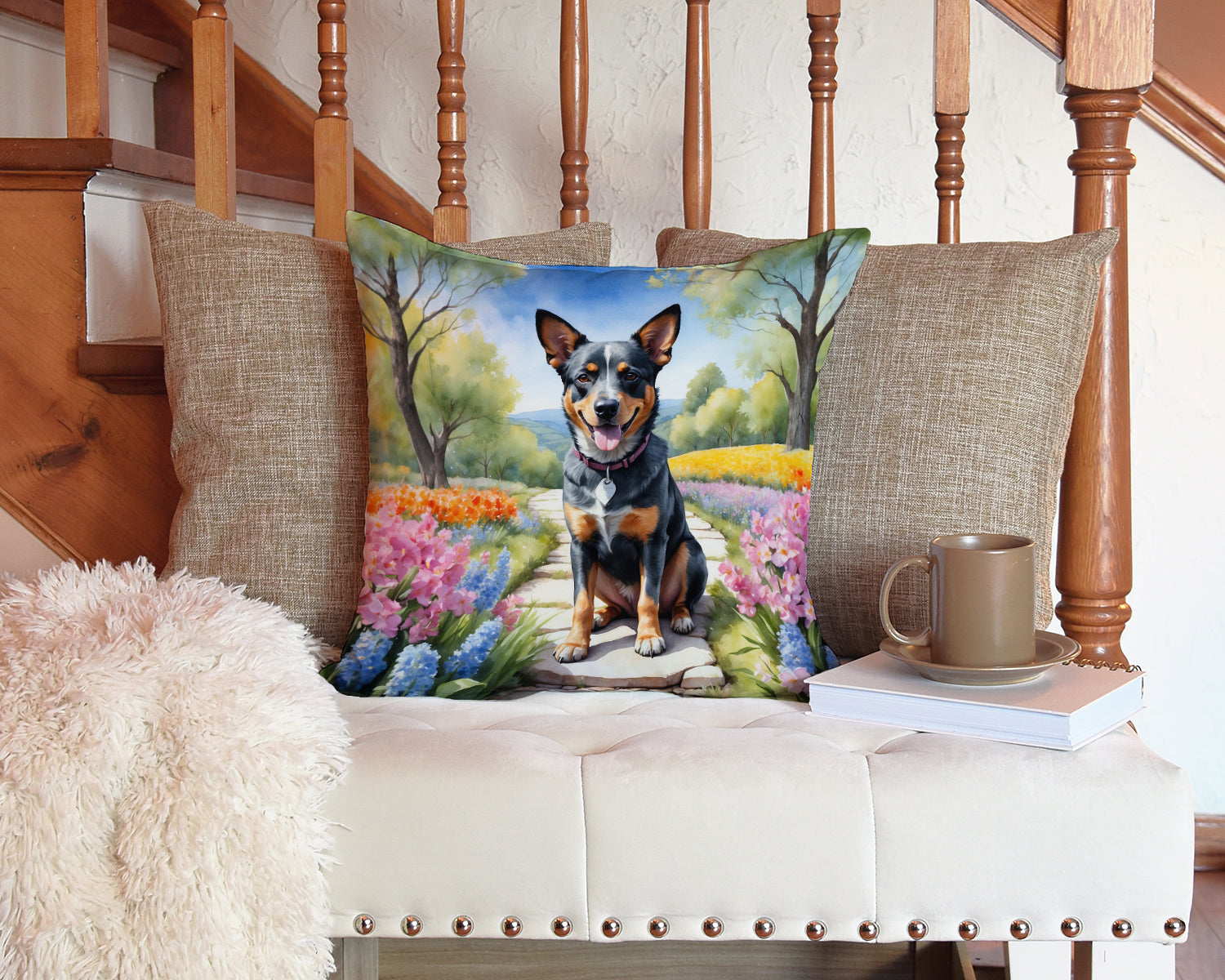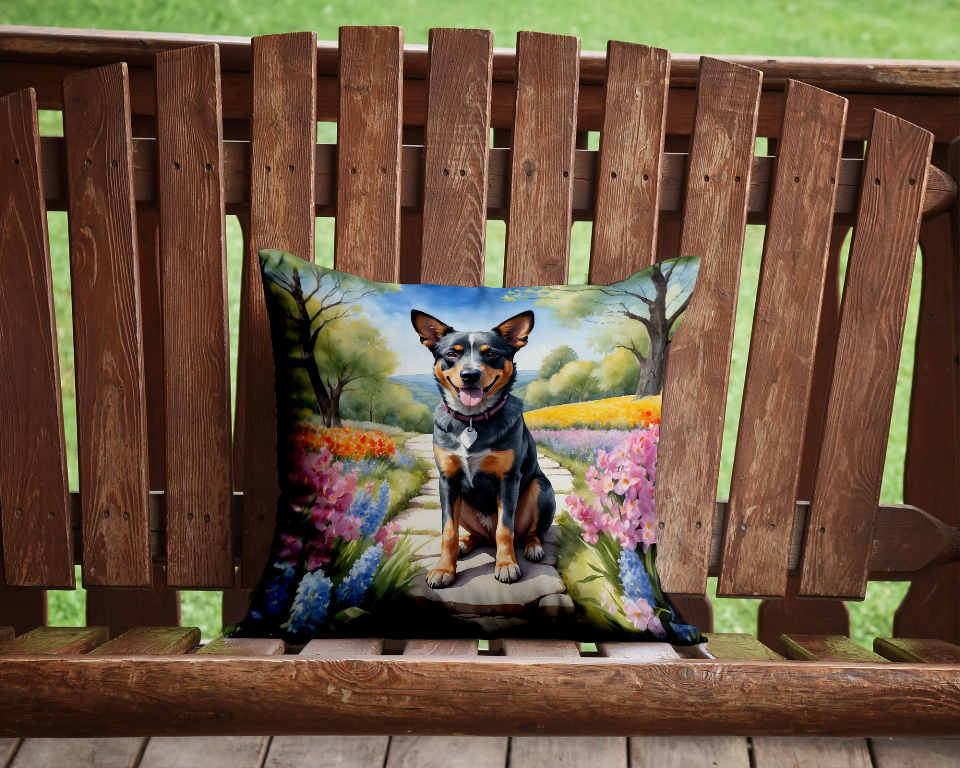 Throw Pillow featuring breed specific Australian Cattle Dog artwork. Add a touch of vibrancy and comfort to your outdoor seating with Caroline's Treasures Fabric Decorative Pillow. Measuring approximately 14 inches by 14 inches, this outdoor pillow is crafted to elevate the appeal of your patio furniture, infusing it with vivid color and artistic flair. The pillow includes a 100% Polyester Fabric sham filled with a quality pillow form to provide superior comfort. Innovatively made from our brand new material, specifically woven for its water resistance, this pillow is designed for durability. The soft canvas fabric offers versatility in use, fit for your indoor couch or your outdoor patio, porch, or veranda. The fabric is dyed with colorfast dyes built for resilience against weather conditions, ensuring the pillow retains its beauty over time. Constructed by sewing three fabric pieces to create a sham, the polyester insert is then nestled inside to form the pillow, resulting in an overstuffed pillow that maintains its shape. Both the sham and the pillow insert are proudly made in the United States. As the pillows are handcrafted, there may be minor variations in size, further enhancing their unique charm. Experience comfort in style with Caroline's Treasures Fabric Decorative Pillow.