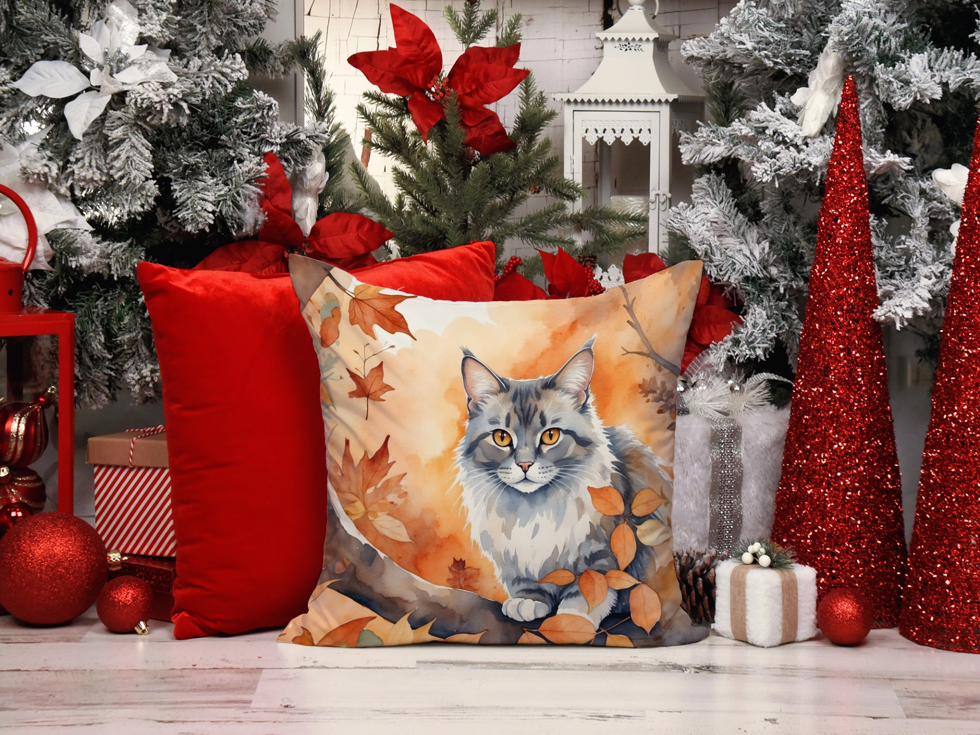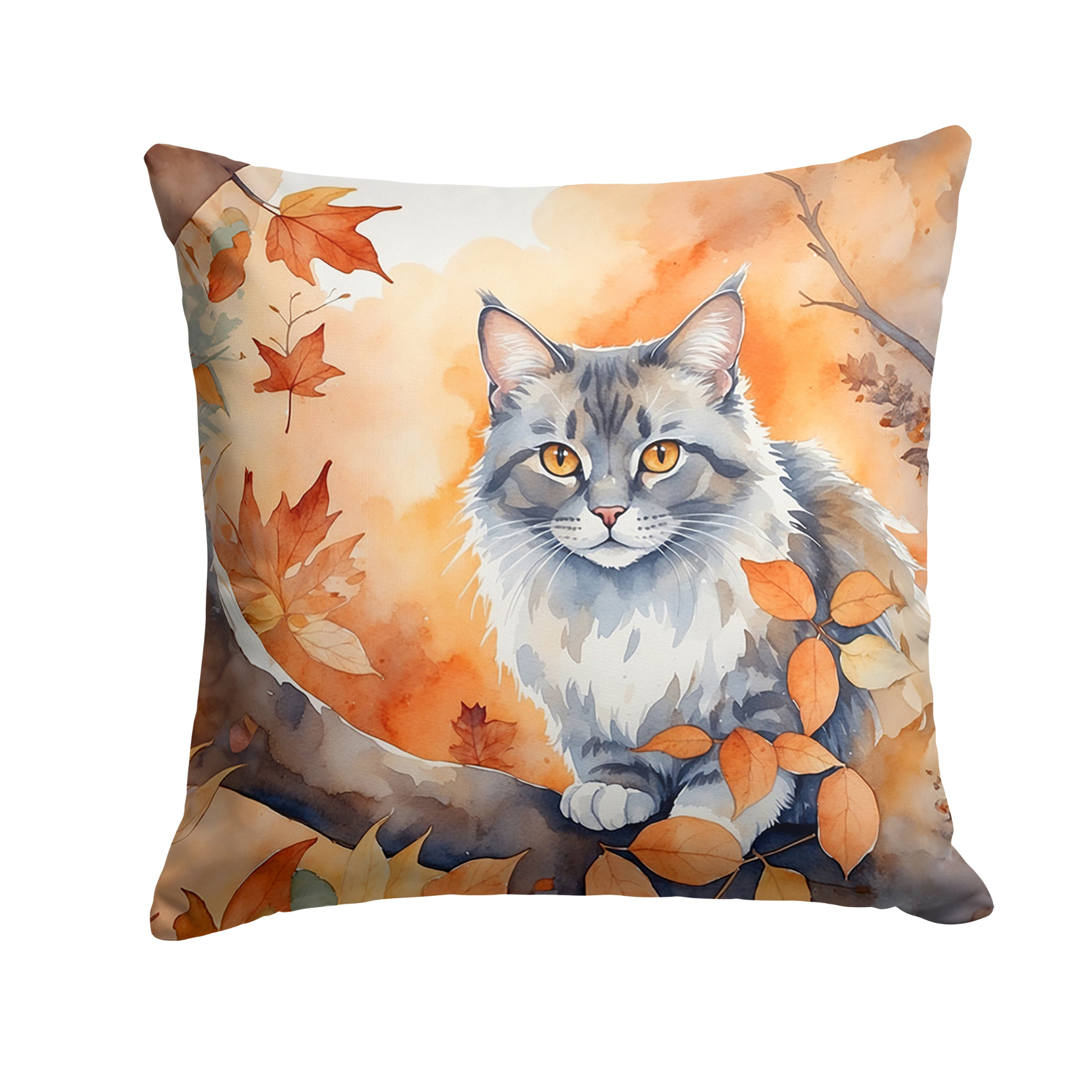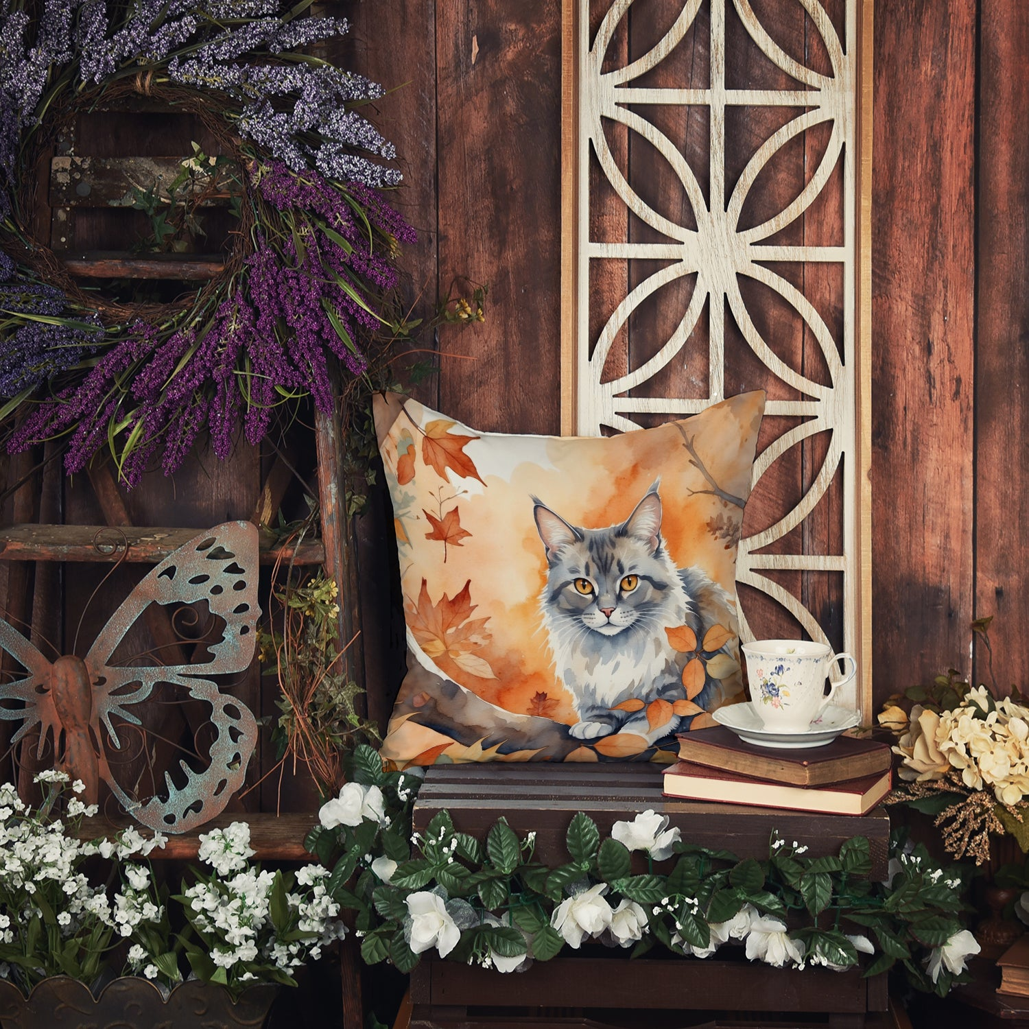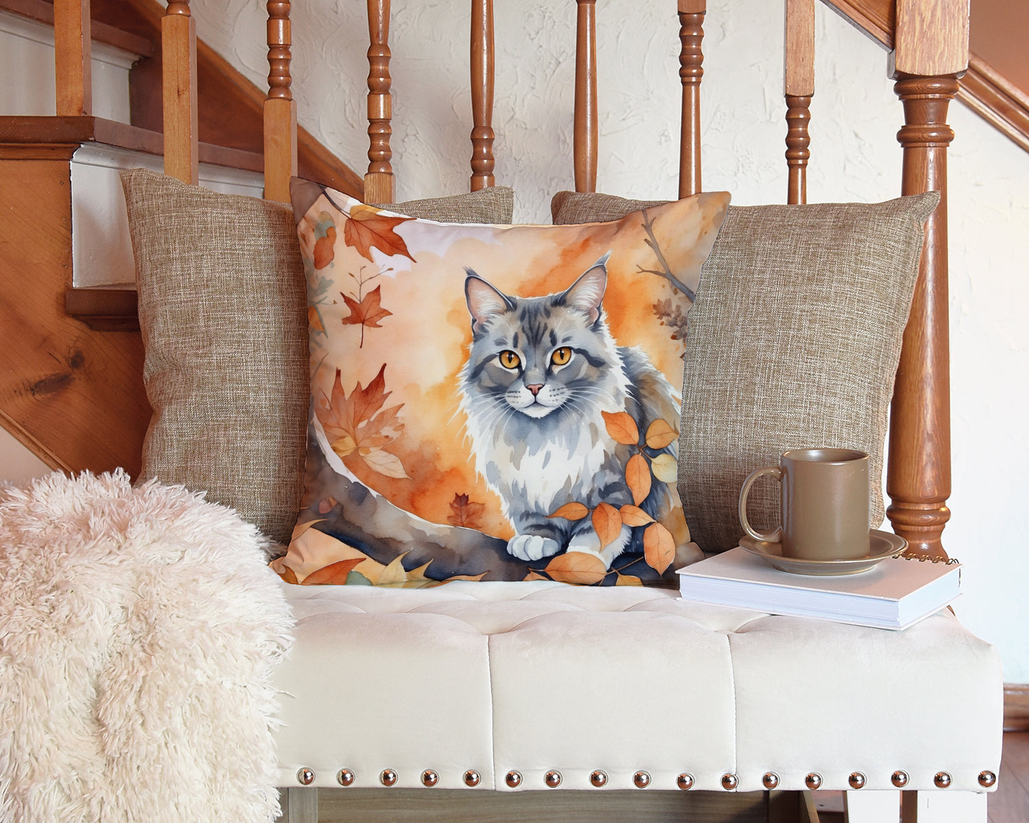 Australian Mist Cat in Fall Leaves Throw Pillow