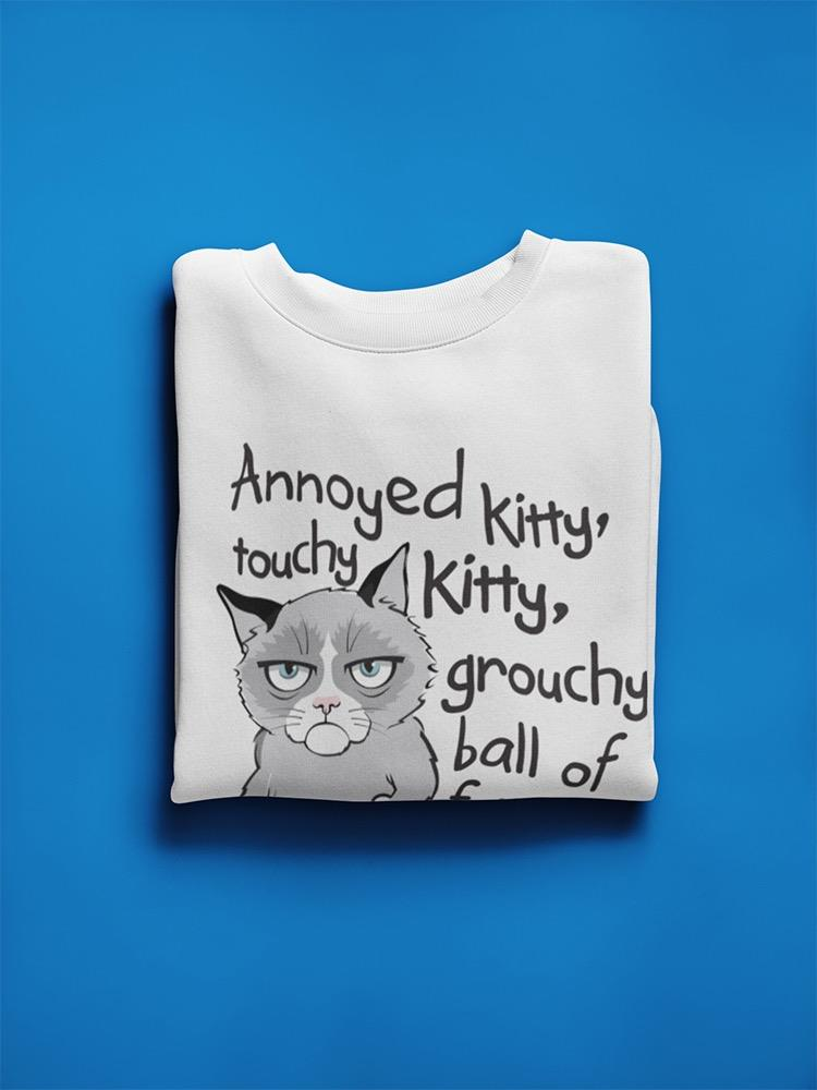 Ball Of Fur Grumpy Cat Sweatshirt Women's -T-Line Designs