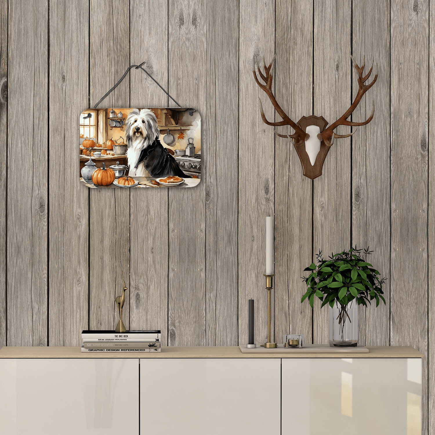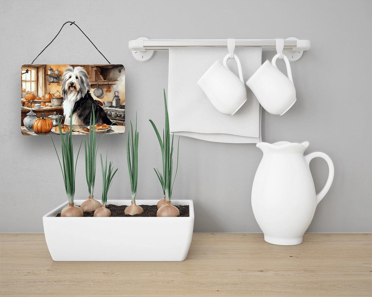 Bearded Collie Fall Kitchen Pumpkins Wall or Door Hanging Prints