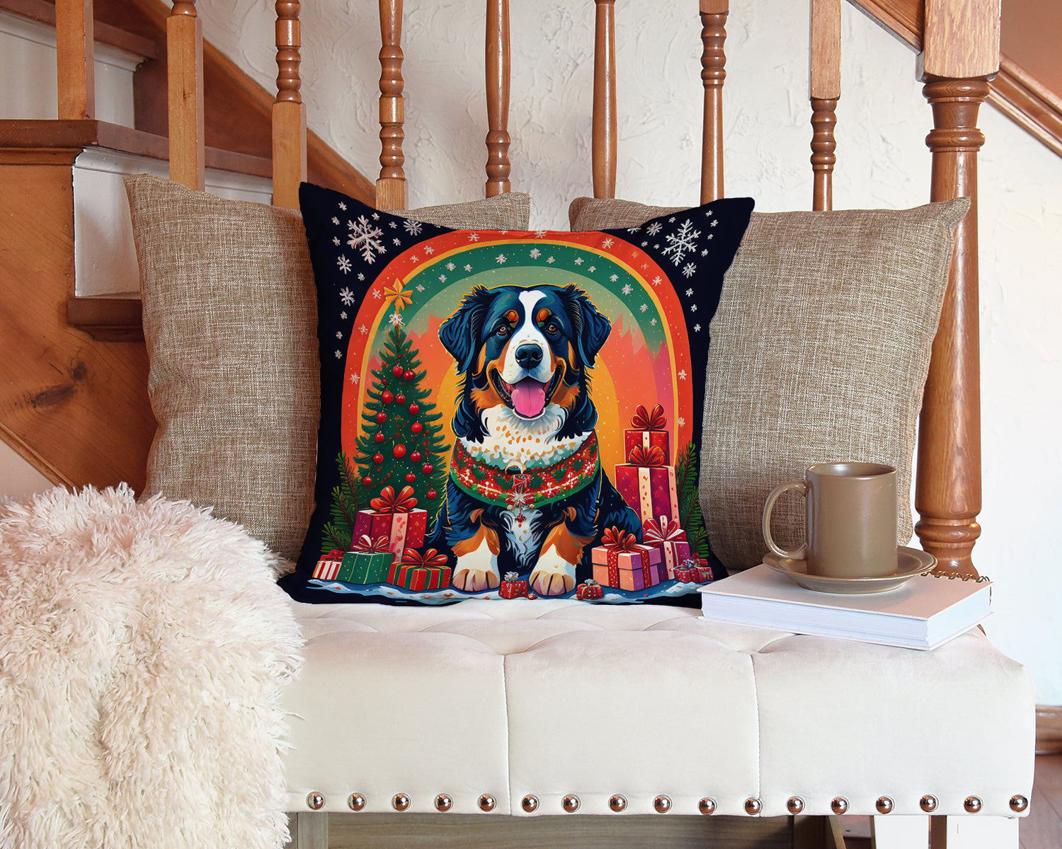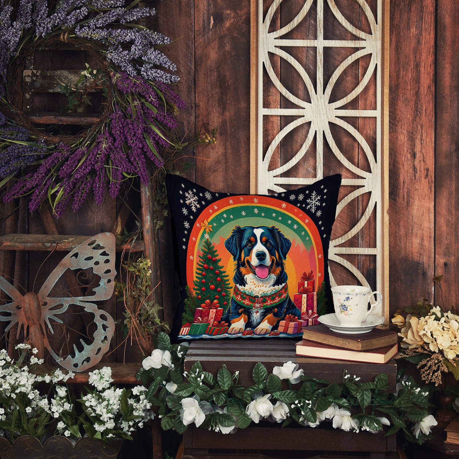 Throw Pillow featuring breed specific Bernese Mountain Dog artwork. Celebrate Christmas with this Christmas Pillow. Add a touch of vibrancy and comfort to your outdoor seating with Caroline's Treasures Fabric Decorative Pillow. Measuring approximately 14 inches by 14 inches, this outdoor pillow is crafted to elevate the appeal of your patio furniture, infusing it with vivid color and artistic flair. The pillow includes a 100% Polyester Fabric sham filled with a quality pillow form to provide superior comfort. Innovatively made from our brand new material, specifically woven for its water resistance, this pillow is designed for durability. The soft canvas fabric offers versatility in use, fit for your indoor couch or your outdoor patio, porch, or veranda. The fabric is dyed with colorfast dyes built for resilience against weather conditions, ensuring the pillow retains its beauty over time. Constructed by sewing three fabric pieces to create a sham, the polyester insert is then nestled inside to form the pillow, resulting in an overstuffed pillow that maintains its shape. Both the sham and the pillow insert are proudly made in the United States. As the pillows are handcrafted, there may be minor variations in size, further enhancing their unique charm. Experience comfort in style with Caroline's Treasures Fabric Decorative Pillow.