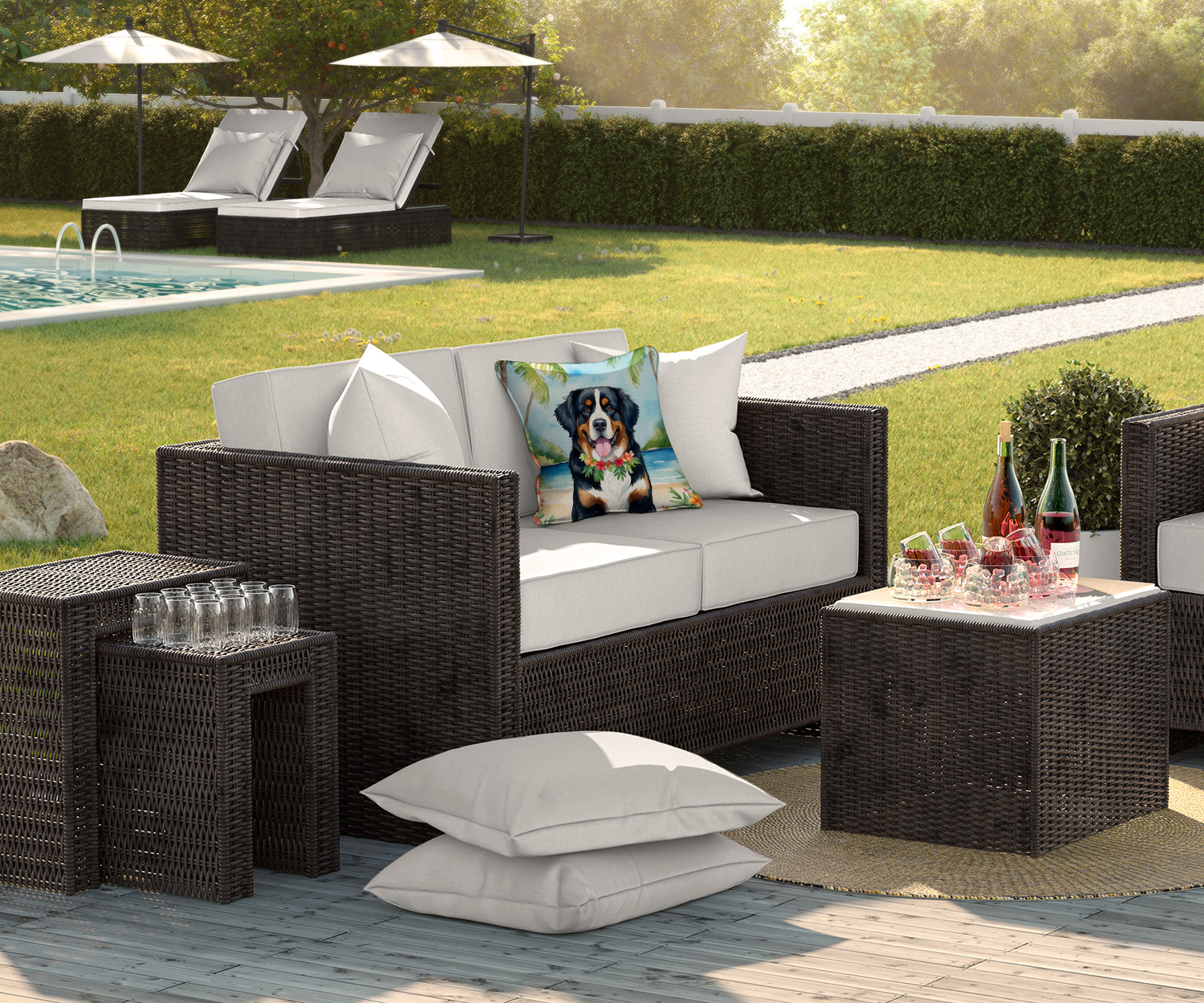 Throw Pillow featuring breed specific Bernese Mountain Dog artwork. Revitalize your outdoor or indoor living space with Caroline's Treasures 18x18 Fabric Decorative Pillow. With a generously sized dimension of approximately 18 inches by 18 inches, this pillow makes a comfortable and aesthetic addition to any seating area. Made from a unique, water-resistant material developed by Caroline's Treasures, the pillow sham is 100% polyester fabric that's durable and ready to weather any condition. Its vibrant, full-color artwork will not fade over time as it is dyed with color-fast dyes. Whether you place it on your patio furniture, porch, veranda, or indoor couch, its soft canvas fabric ensures a cozy experience. The pillow is handcrafted in the United States, featuring a sham created from three pieces of fabric and a polyester insert for enduring shape and overstuffed comfort. Despite being robustly built to endure the outdoors, it is as soft and snug as your favorite indoor cushions. Please note, as all our pillows are handmade, sizes may vary slightly, adding to the charm of this unique decorative item.