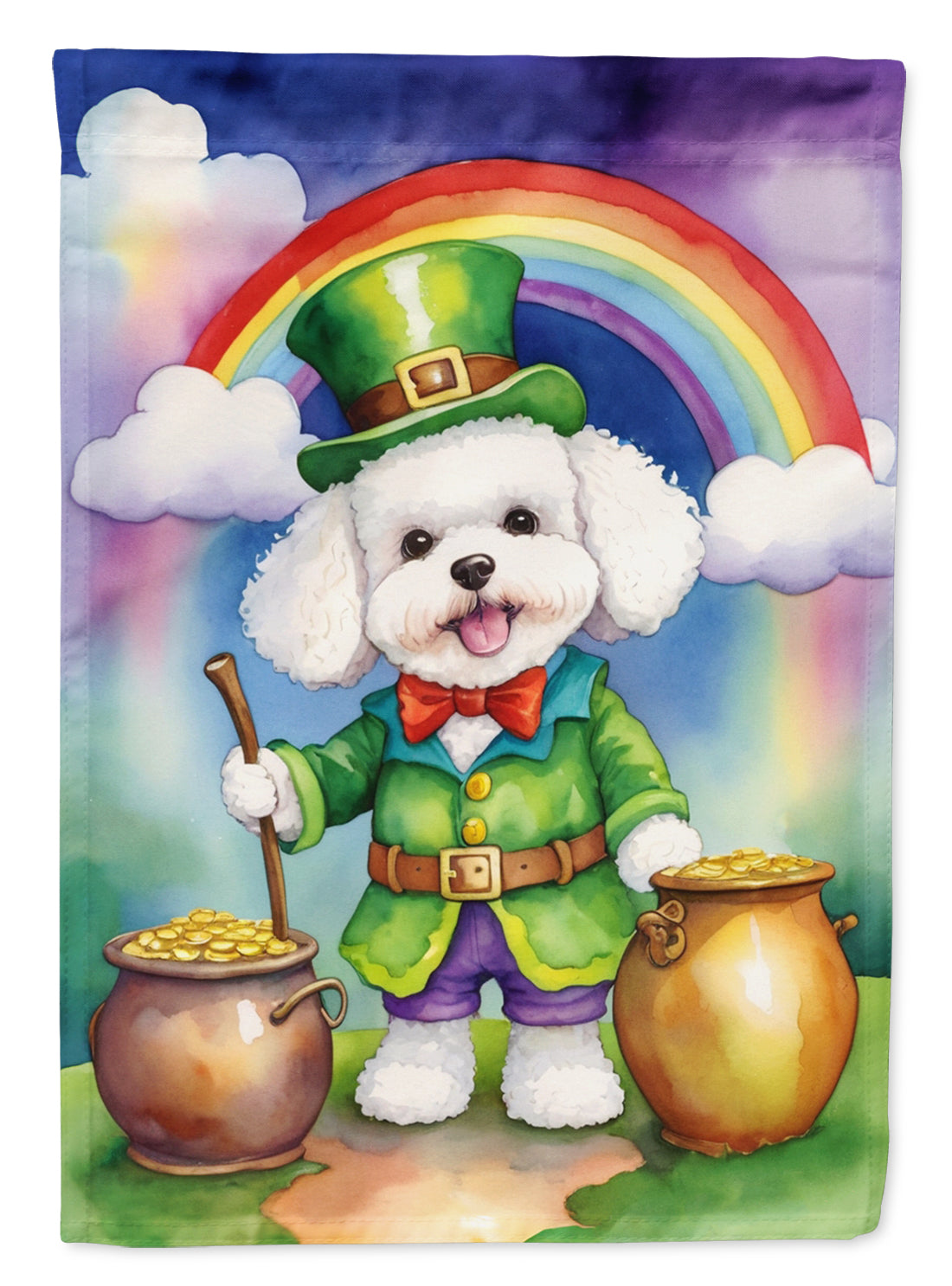 House Flag featuring breed specific Bichon Frise artwork. Celebrate St Patrick's Day with this St Patrick's Day Large Flag. Presenting our Heavy Duty Polyester House Size Decorative Sleeve Pole Flag, a vibrant addition to enhance the aesthetic appeal of your home. This large decorative flag, measuring approximately 28 x 40 inches, offers ample coverage and visibility. Each flag is meticulously sewn and made individually, ensuring a unique piece that may slightly vary in size. It's a sleeve pole flag, designed to fit a standard decorative flag pole effortlessly. Please note that the flag pole and bracket are not included and should be purchased separately. What sets our flag apart is its dual-sided print. The design is mirrored on both sides of the fabric, allowing for uniform visibility regardless of the angle. Printed in full color, our flag showcases vibrant hues that truly stand out. To ensure lasting vibrancy and durability, the dyes are heat-set into the fabric. This ensures your flag remains bright and captivating through various weather conditions. Elevate the look of your home with our Heavy Duty Polyester House Size Decorative Sleeve Pole Flag!