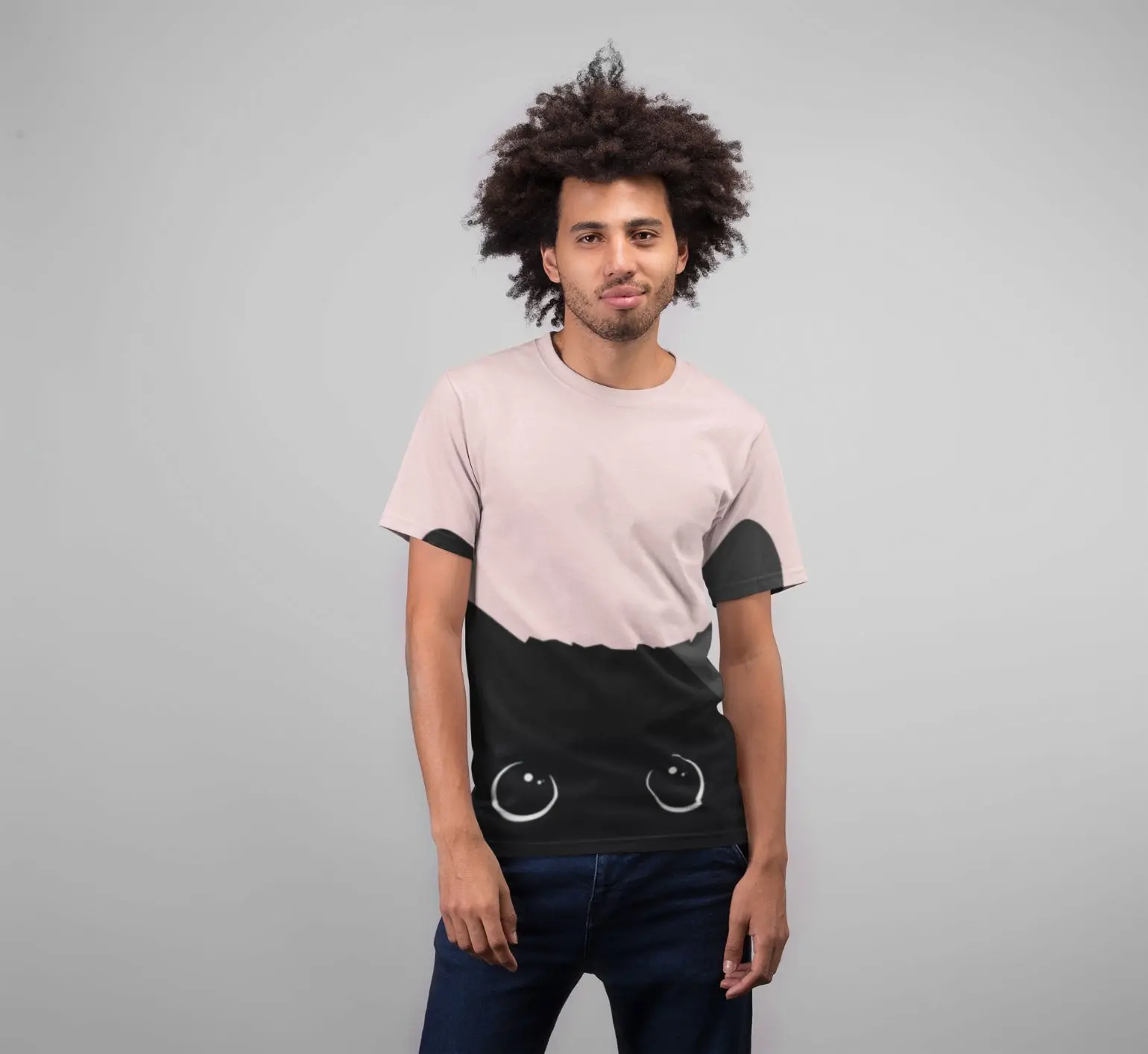 Black Cat on Pink Background Premium Sublimation Adult T-Shirt