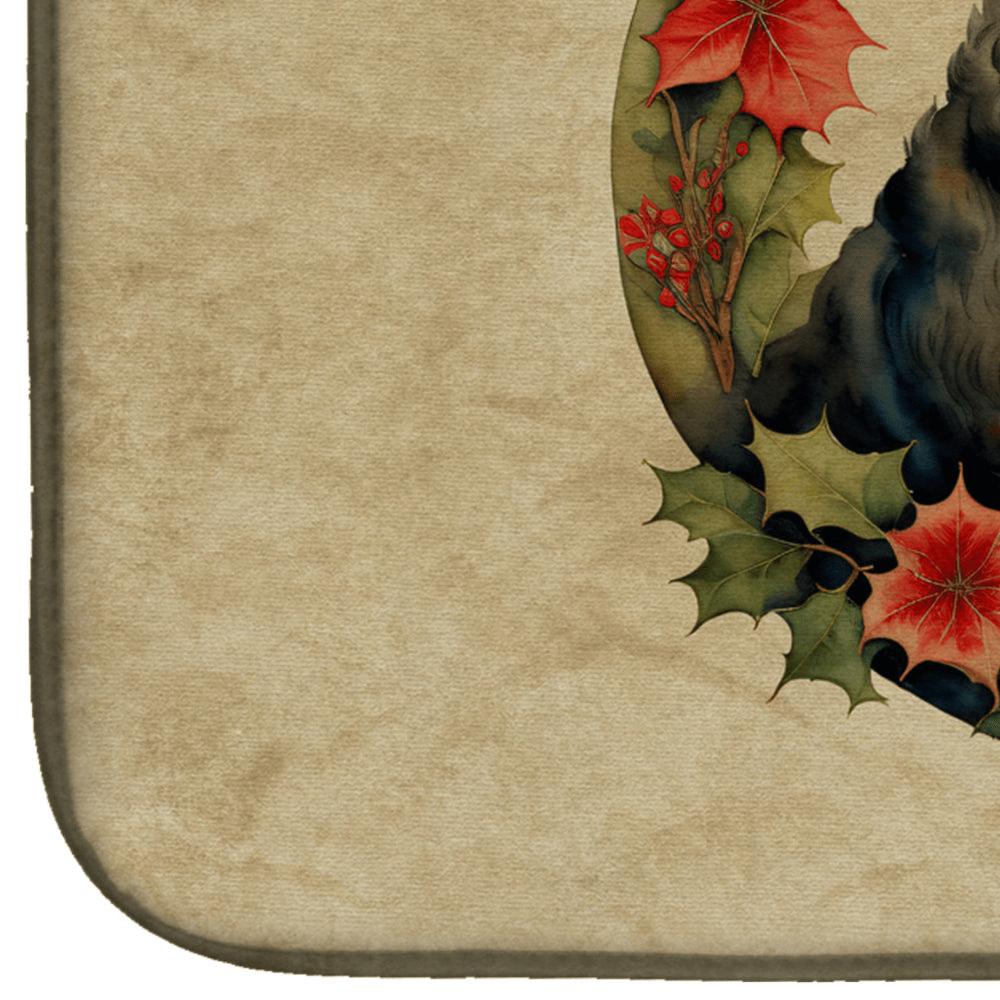 Bouvier des Flandres Christmas Flowers Dish Drying Mat