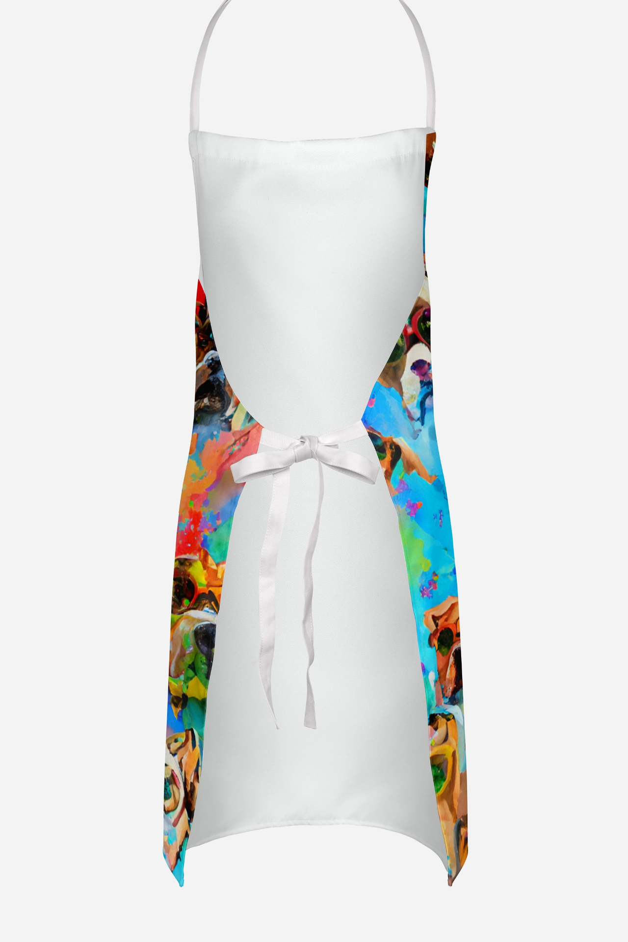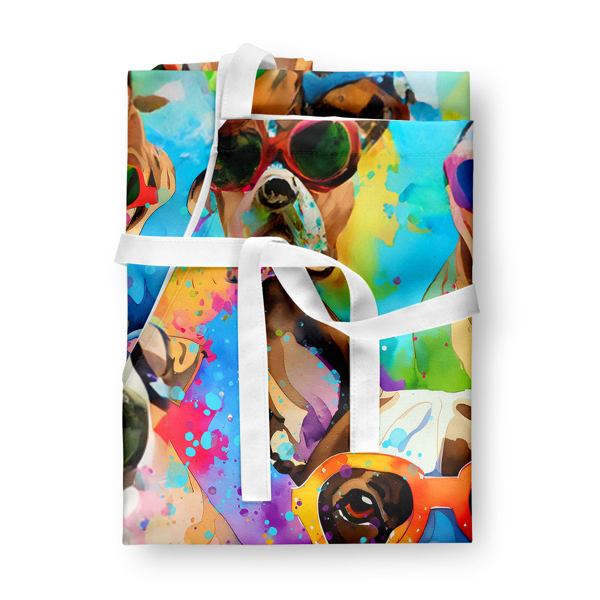 Apron featuring breed specific Boxer artwork. Elevate your cooking, baking, and grilling experiences with our versatile Kitchen or BBQ Apron. This Bib Style apron isn't just limited to culinary activities - it also serves as an excellent baking apron, artist apron, server apron, gardening apron, or even a dog grooming apron. The apron showcases vibrant full-color artwork contributed by one of our talented artists, bringing a dash of style to your daily tasks. With dimensions of approximately 27"W x 30"H, it provides ample coverage to protect your clothing from spills and splashes. Our apron is meticulously crafted from 100% Ultra Spun Polyester, known for its durability and lightweight nature. The apron comes with white tie straps, ensuring a comfortable and adjustable fit for all. It's a perfect choice for kitchen apron enthusiasts, whether you are a woman or a man. Designed for easy maintenance, this apron is fully machine washable. The quick-drying polyester material actively reduces staining, keeping your apron looking fresh and new for longer. Our beautifully designed apron isn't just a functional kitchen accessory - it's a fashion statement in the culinary world!
