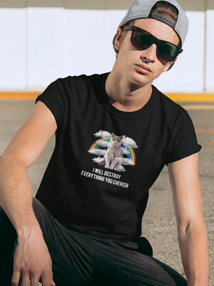 Funny cat will destroy everything you cherish Men's ( T-shirt )Women's ( T-shirt ). Design by Smartprints.