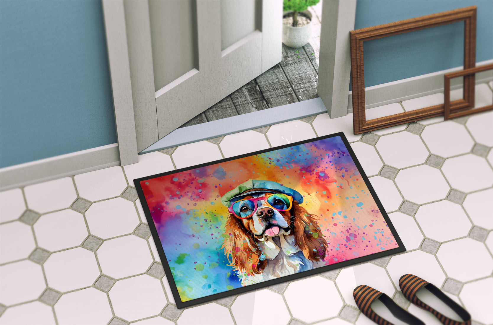Doormat featuring breed specific Cavalier King Charles Spaniel artwork. Welcome your guests in style with our Artwork Door Mat, designed to withstand almost any weather condition. This mat, measuring approximately 24 by 36 inches, is held together by durable black binding tape. Its top layer, composed of polyester felt, is dyed with the eye-catching image you see on the mat. A few layers below provide the mat with stability, while its rubber bottom is stamped to help prevent slipping and ensures safety. Our mat works wonderfully as both an indoor or outdoor door mat. For cleaning, simply hose it off with water or use a power washer - no need for any cleaner that produces suds. Avoid scrubbing with a brush, instead, opt for the vacuum on floor setting. Designed manufactured and printed in the USA, this mat is a perfect addition to your porch, outdoor kitchen, entryway, or any indoor space. Its unique design makes it a charming decorative rug that greets your guests and adds a stylish touch to your home decor.