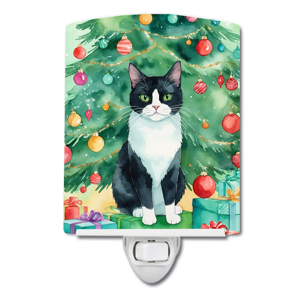 Chantilly Tiffany Cat By the Christmas Tree Ceramic Night Light