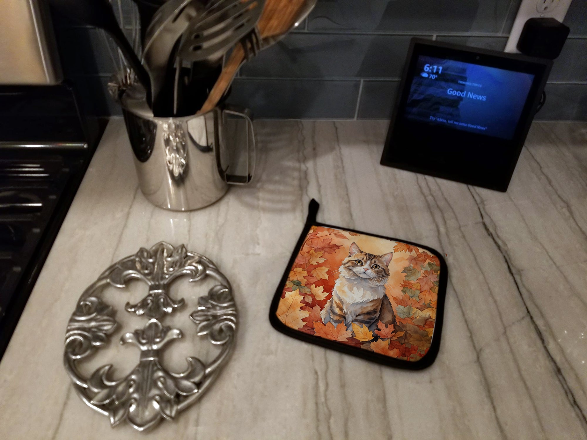Pair of Pot Holders featuring breed specific Chantilly Tiffany artwork. A Pair of Pot Holders to match your kitchen decor. Made in the USA these are thick and functional. Full color artwork decorates the front polyester fabric of the hot pad and accented by a black trim. Use these at as a trivet for your Thanksgiving or Christmas tablescape. Filled with insulated fabric and quilted for durability. These colorful pot holders will make a great gift for your favorite home cook or executive chef. Each pot holder measures approximately 7 1/2 inches by 7 1/2 inches. A hanging tab is included.