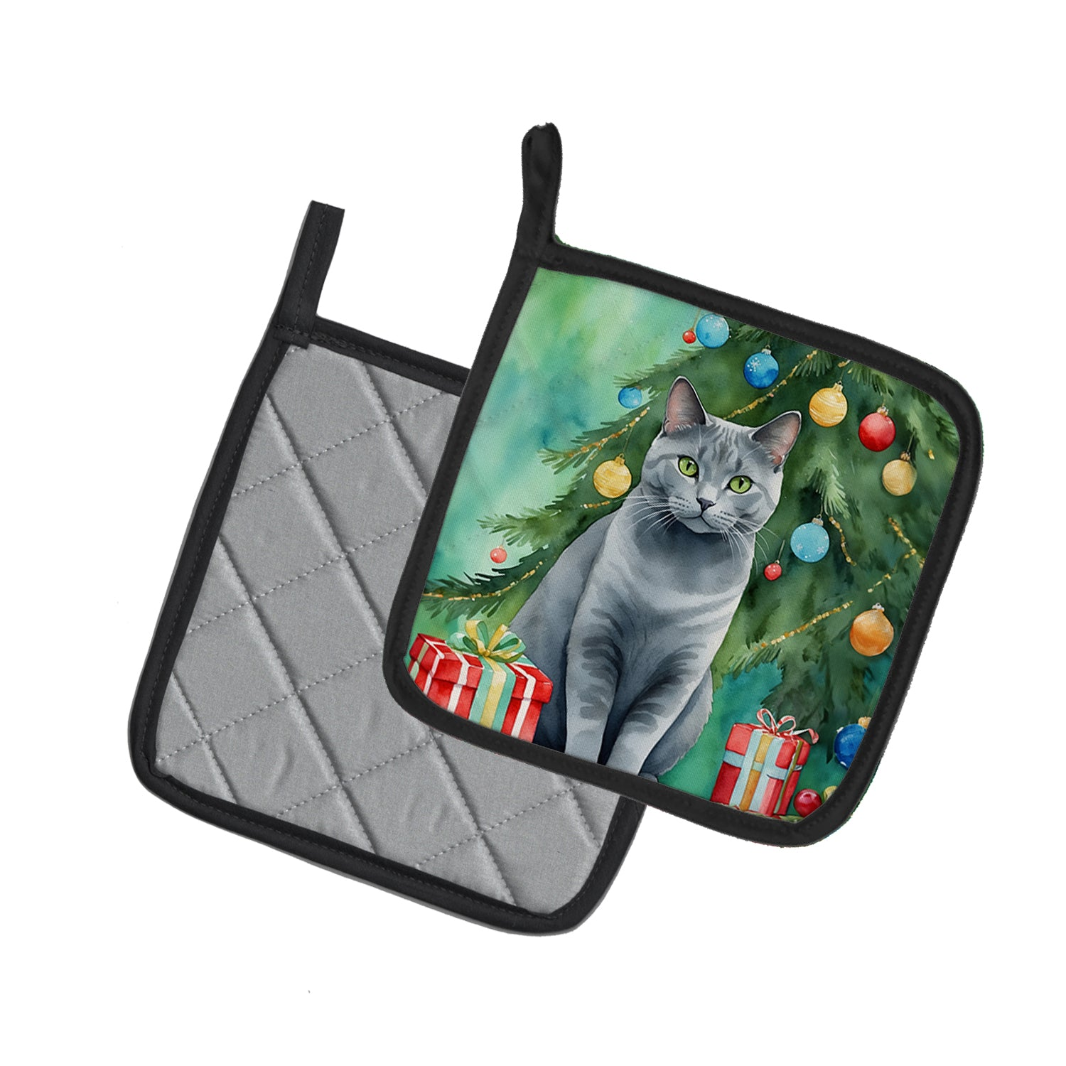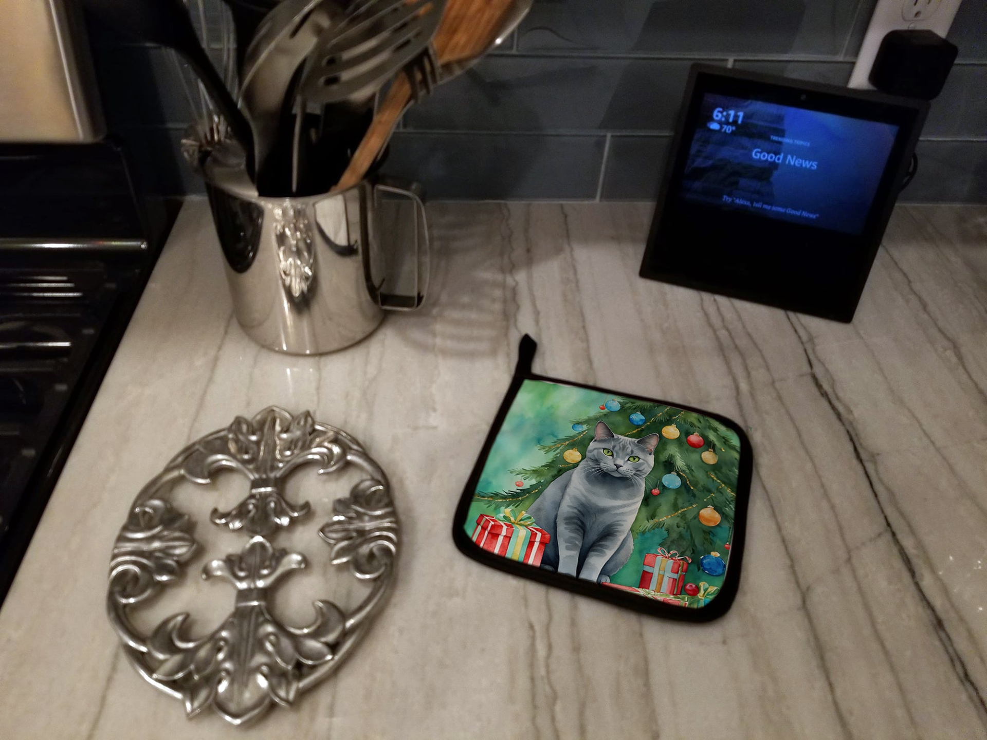 Pair of Pot Holders featuring breed specific Chartreux artwork. Celebrate Christmas with this Christmas Pair of Pot Holders. A Pair of Pot Holders to match your kitchen decor. Made in the USA these are thick and functional. Full color artwork decorates the front polyester fabric of the hot pad and accented by a black trim. Use these at as a trivet for your Thanksgiving or Christmas tablescape. Filled with insulated fabric and quilted for durability. These colorful pot holders will make a great gift for your favorite home cook or executive chef. Each pot holder measures approximately 7 1/2 inches by 7 1/2 inches. A hanging tab is included.