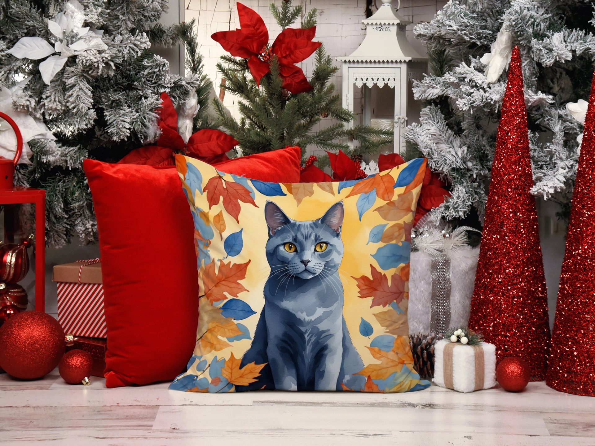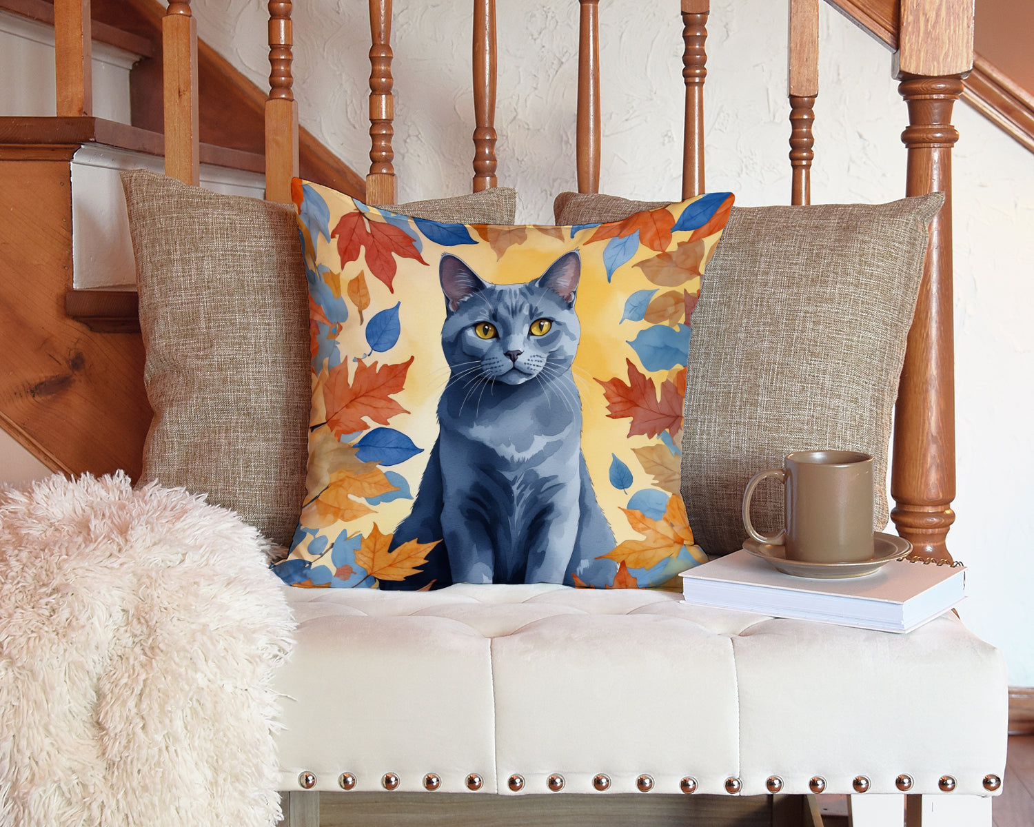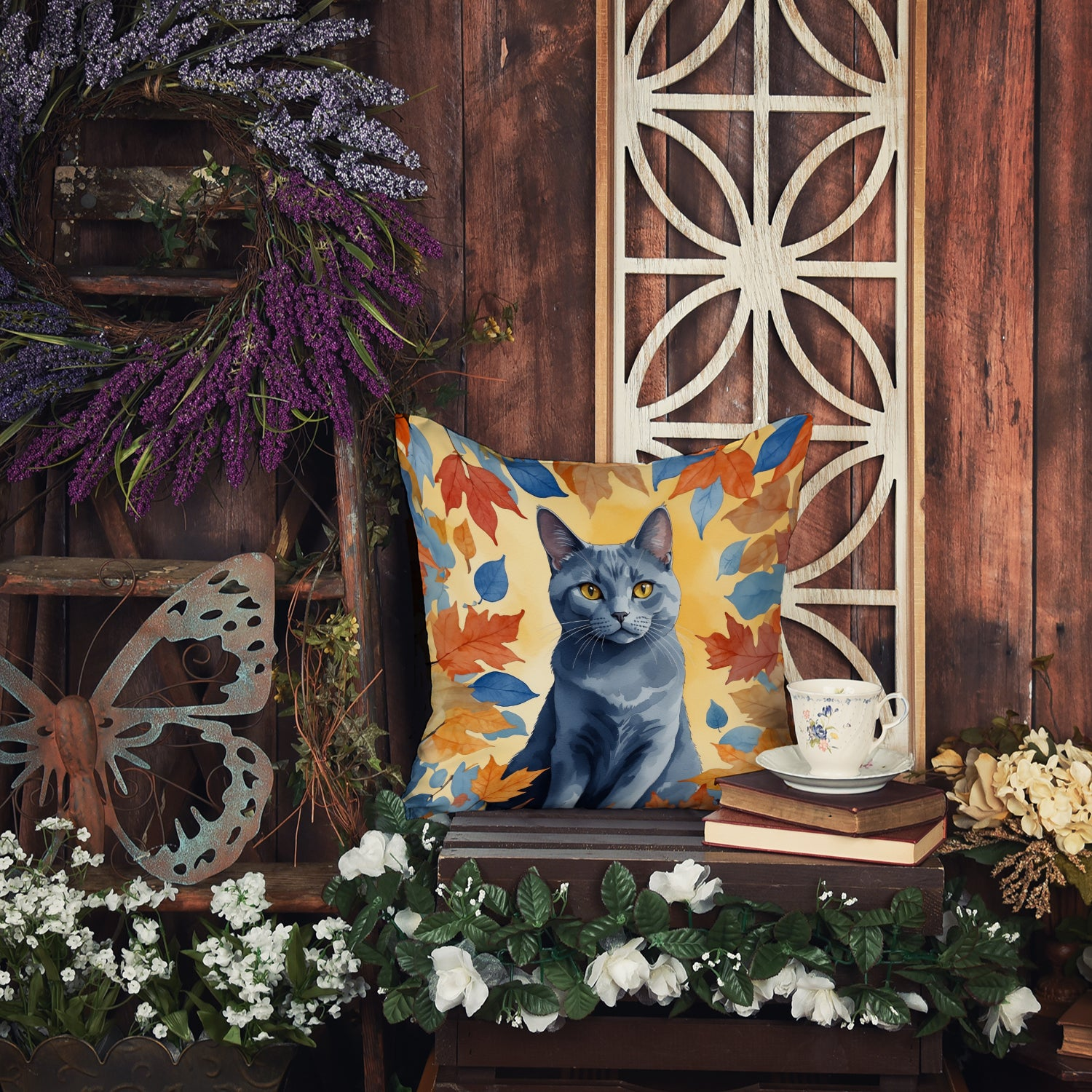 Throw Pillow featuring breed specific Chartreux artwork. Celebrate Halloween with this Halloween Pillow. Add a touch of vibrancy and comfort to your outdoor seating with Caroline's Treasures Fabric Decorative Pillow. Measuring approximately 14 inches by 14 inches, this outdoor pillow is crafted to elevate the appeal of your patio furniture, infusing it with vivid color and artistic flair. The pillow includes a 100% Polyester Fabric sham filled with a quality pillow form to provide superior comfort. Innovatively made from our brand new material, specifically woven for its water resistance, this pillow is designed for durability. The soft canvas fabric offers versatility in use, fit for your indoor couch or your outdoor patio, porch, or veranda. The fabric is dyed with colorfast dyes built for resilience against weather conditions, ensuring the pillow retains its beauty over time. Constructed by sewing three fabric pieces to create a sham, the polyester insert is then nestled inside to form the pillow, resulting in an overstuffed pillow that maintains its shape. Both the sham and the pillow insert are proudly made in the United States. As the pillows are handcrafted, there may be minor variations in size, further enhancing their unique charm. Experience comfort in style with Caroline's Treasures Fabric Decorative Pillow.
