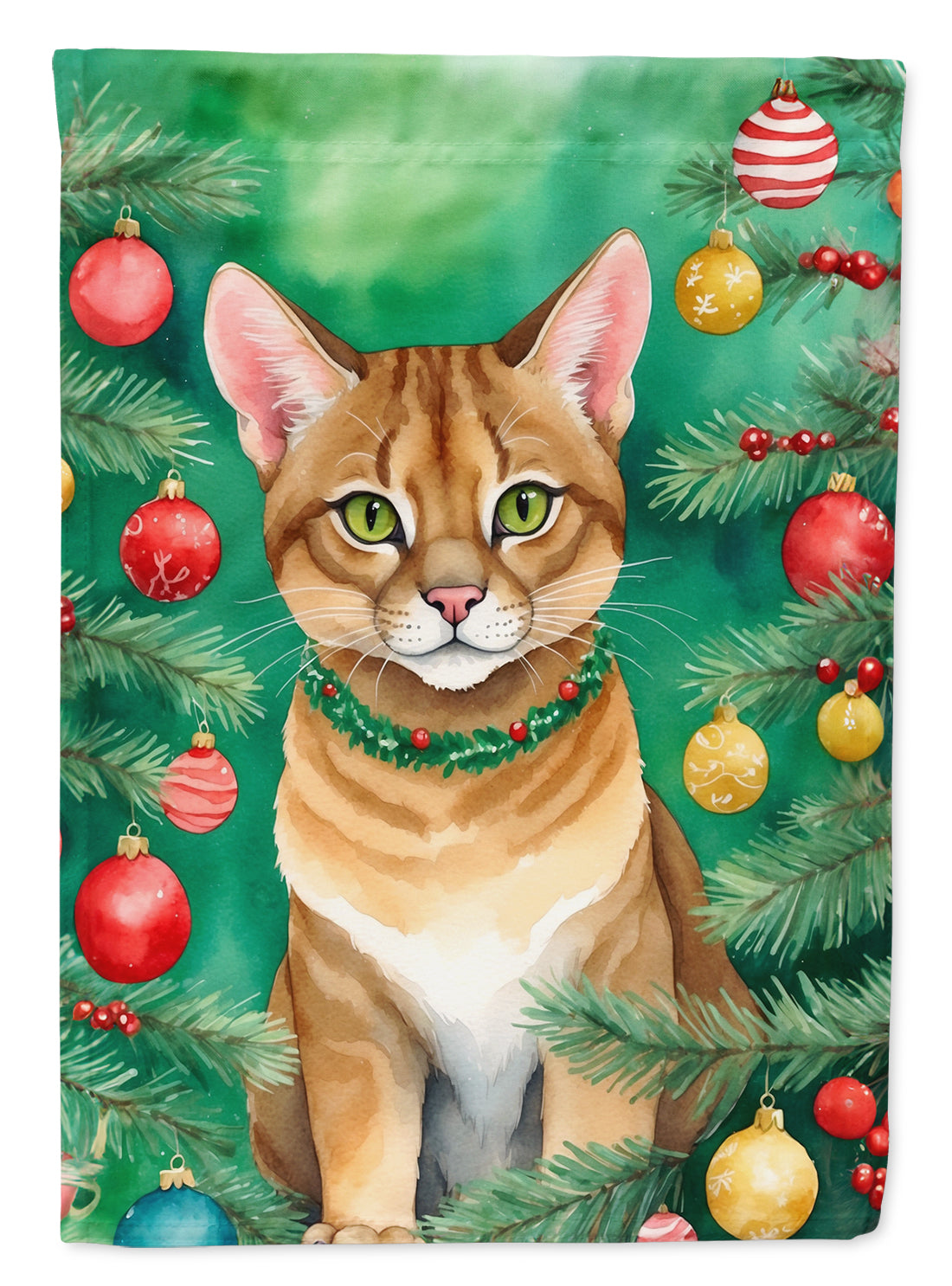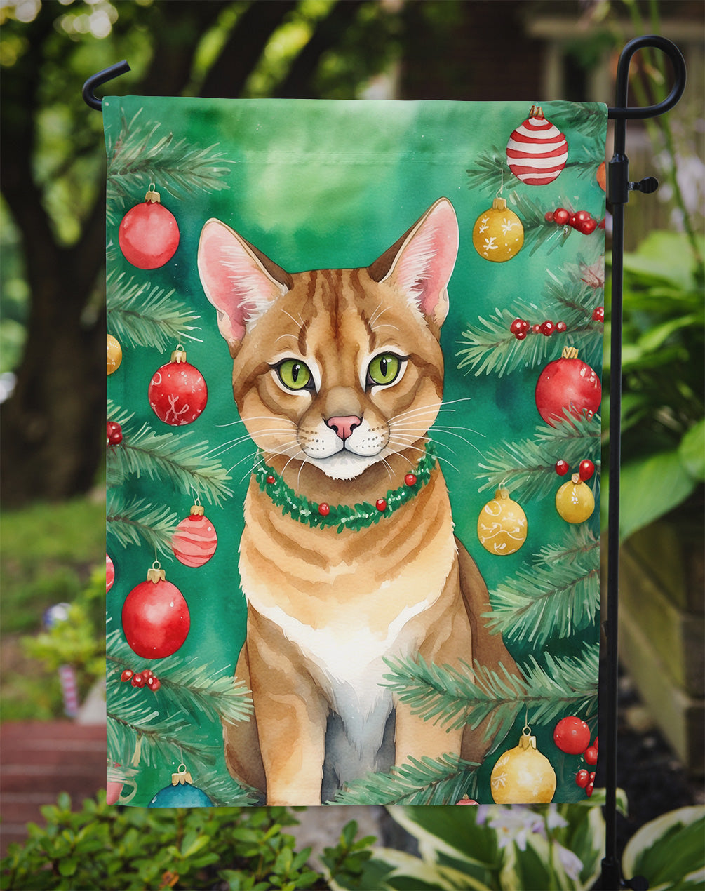 Garden Flag featuring breed specific Chausie artwork. Celebrate Christmas with this Christmas Garden Flag. Enhance the beauty of your garden, patio, or yard with Caroline's Treasures Decorative Garden Flag, proudly made in the USA. Crafted from two pieces of thick, double-sided polyester fabric, this 2-ply garden flag is designed to withstand various weather conditions, making it water-resistant and weatherproof. Featuring correctly readable words on both sides, this garden flag offers a delightful visual experience from any angle. With its heavier weight, it stands out among other garden flags, ensuring stability and durability even in wind, rain, and snow. Measuring approximately 11 1/4 inches by 15 1/2 inches, this flag allows you to personalize your outdoor decor. It comes with a 1 1/2-inch sleeve sewn in, allowing easy attachment to any standard garden flag stand or garden size porch hanger (sold separately). Make a statement in your outdoor space with Caroline's Treasures Decorative Garden Flag, a vibrant and high-quality flag that adds color and personality to your surroundings. Proudly made in the USA, it's a symbol of quality craftsmanship and attention to detail.
