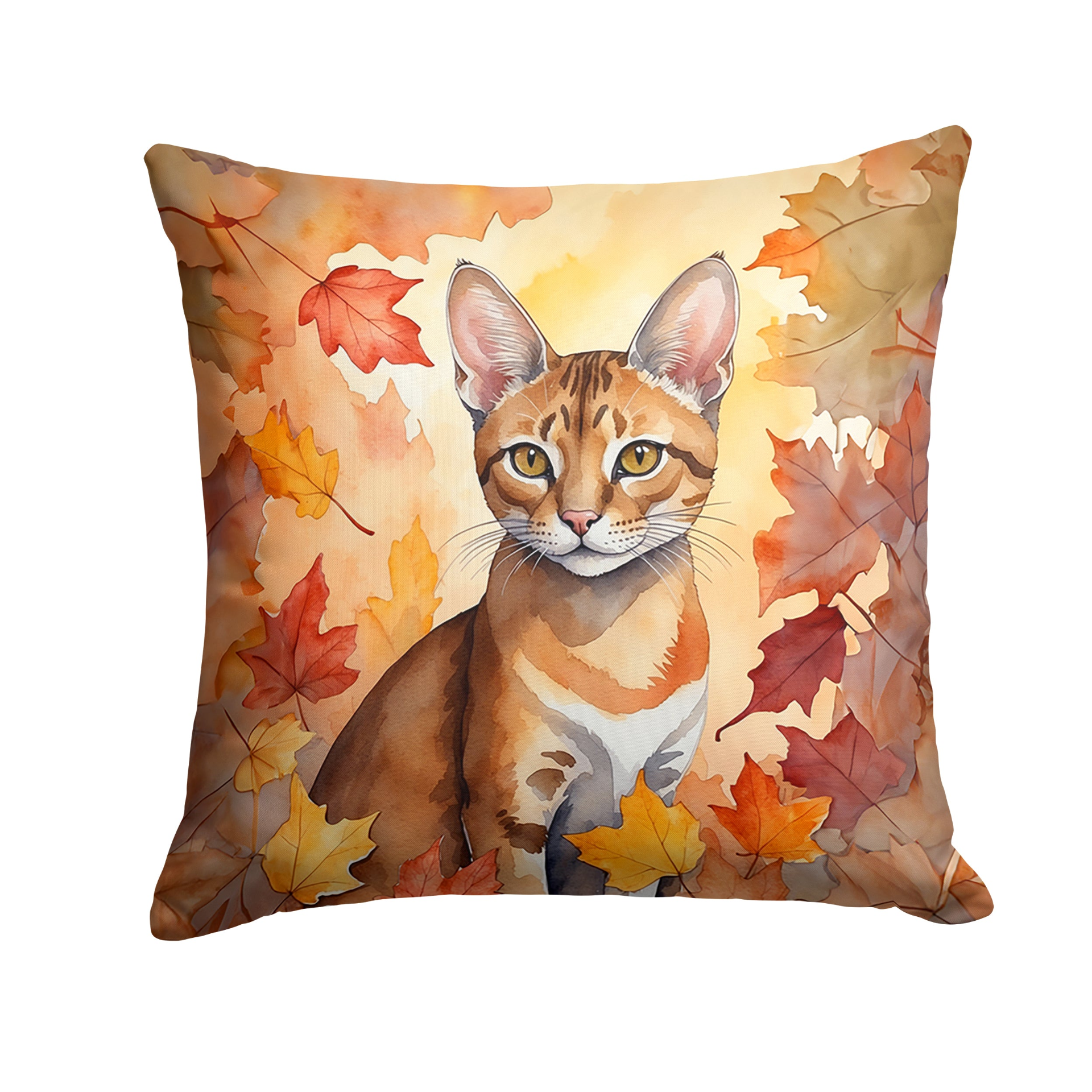 Throw Pillow featuring breed specific Chausie artwork. Celebrate Halloween with this Halloween Pillow. Add a touch of vibrancy and comfort to your outdoor seating with Caroline's Treasures Fabric Decorative Pillow. Measuring approximately 14 inches by 14 inches, this outdoor pillow is crafted to elevate the appeal of your patio furniture, infusing it with vivid color and artistic flair. The pillow includes a 100% Polyester Fabric sham filled with a quality pillow form to provide superior comfort. Innovatively made from our brand new material, specifically woven for its water resistance, this pillow is designed for durability. The soft canvas fabric offers versatility in use, fit for your indoor couch or your outdoor patio, porch, or veranda. The fabric is dyed with colorfast dyes built for resilience against weather conditions, ensuring the pillow retains its beauty over time. Constructed by sewing three fabric pieces to create a sham, the polyester insert is then nestled inside to form the pillow, resulting in an overstuffed pillow that maintains its shape. Both the sham and the pillow insert are proudly made in the United States. As the pillows are handcrafted, there may be minor variations in size, further enhancing their unique charm. Experience comfort in style with Caroline's Treasures Fabric Decorative Pillow.