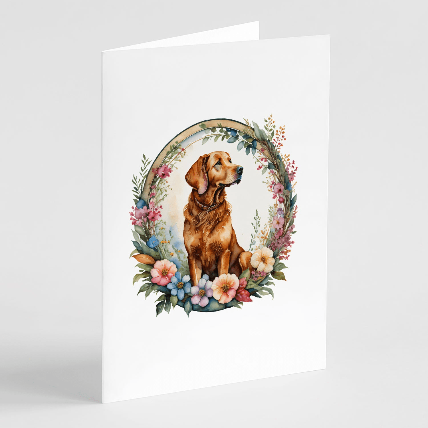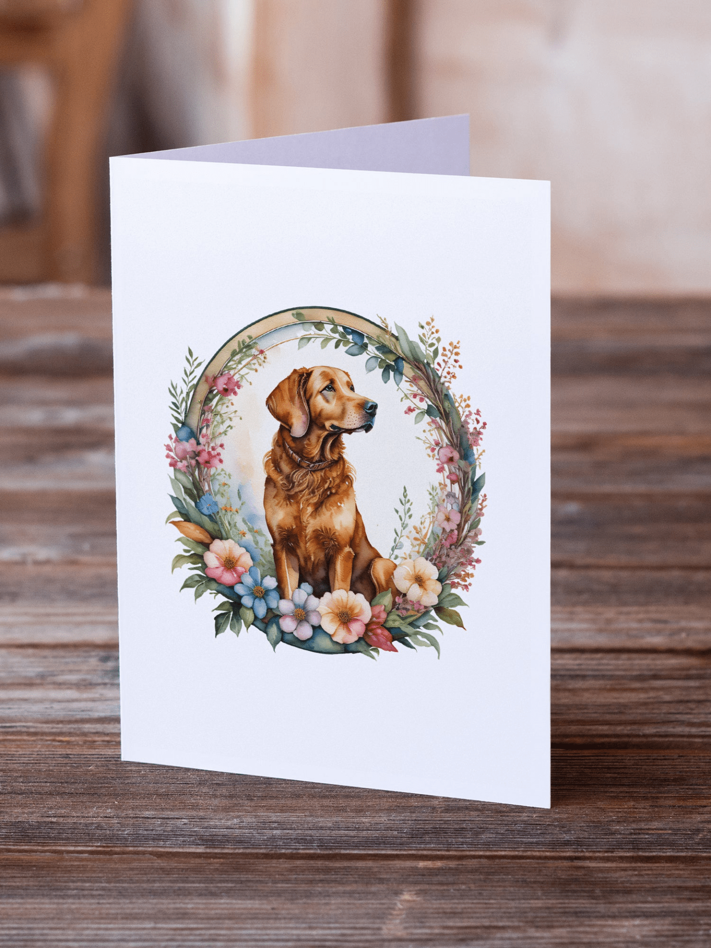 Step into a world of elegant sentiment with this eight-card set, each celebrating the Chesapeake Bay Retriever’s confident charm paired with graceful floral artistry. The pack includes eight beautifully folded 5x7 cards with blank interiors and eight matching white envelopes, perfect for birthdays, holidays, or any moment you want to celebrate. Printed on premium stock with a super-smooth finish, these greeting cards elevate everyday notes into luxurious keepsakes that your loved ones will treasure.