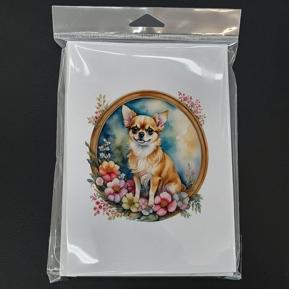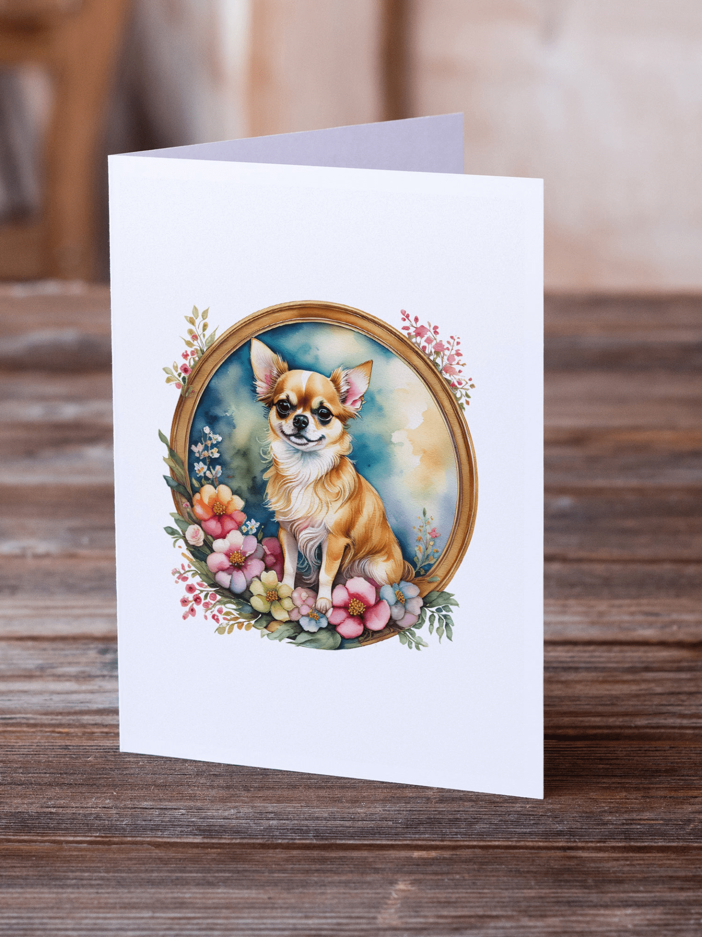 Chihuahua and Flowers Greeting Cards Pack of 8