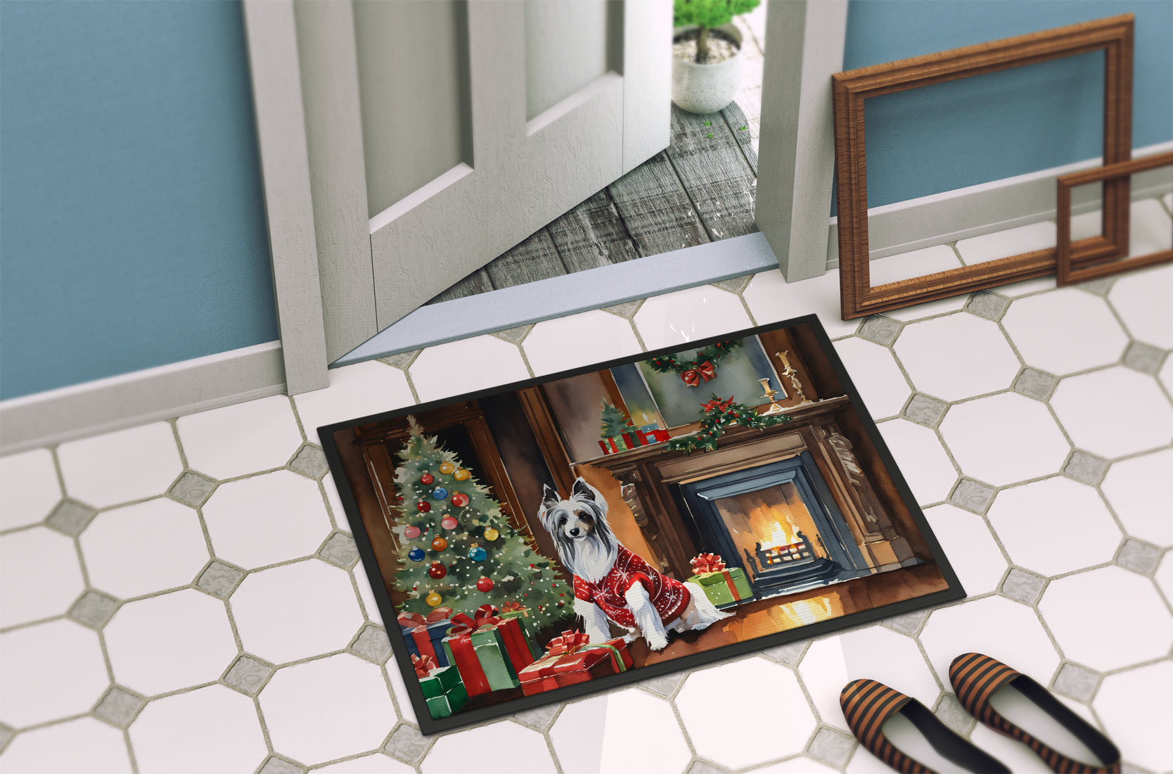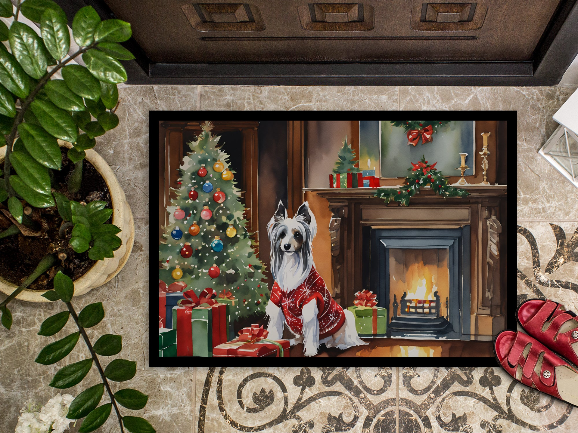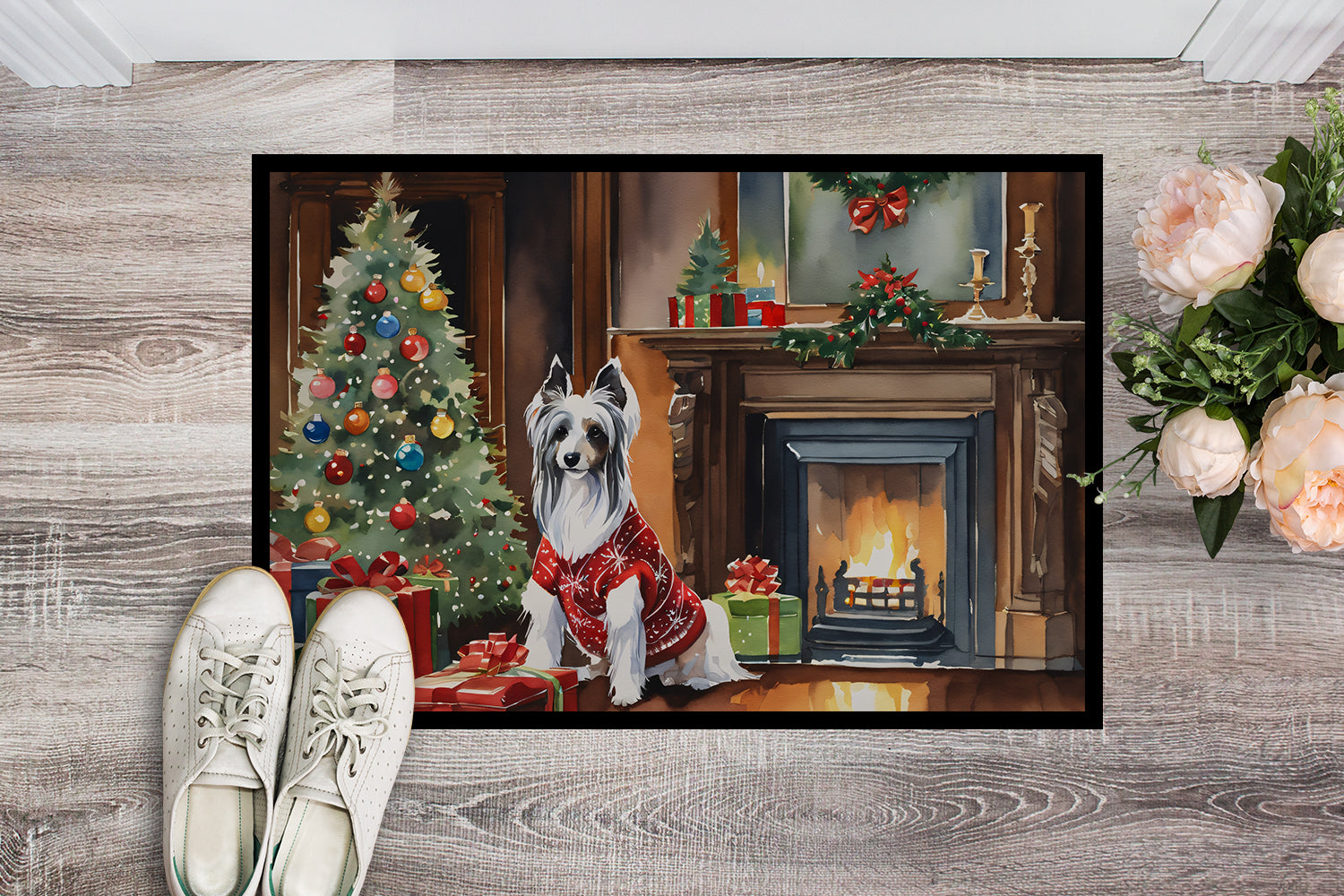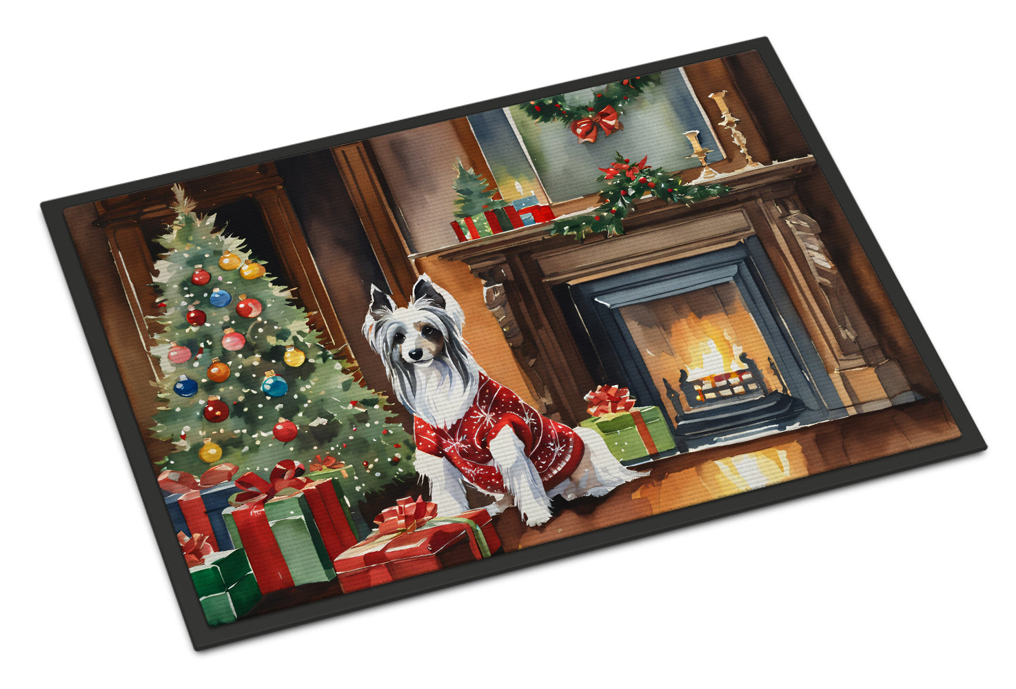 Doormat featuring breed specific Chinese Crested artwork. Celebrate Christmas with this Christmas Doormat. Welcome your guests in style with our Artwork Door Mat, designed to withstand almost any weather condition. This mat, measuring approximately 24 by 36 inches, is held together by durable black binding tape. Its top layer, composed of polyester felt, is dyed with the eye-catching image you see on the mat. A few layers below provide the mat with stability, while its rubber bottom is stamped to help prevent slipping and ensures safety. Our mat works wonderfully as both an indoor or outdoor door mat. For cleaning, simply hose it off with water or use a power washer - no need for any cleaner that produces suds. Avoid scrubbing with a brush, instead, opt for the vacuum on floor setting. Designed manufactured and printed in the USA, this mat is a perfect addition to your porch, outdoor kitchen, entryway, or any indoor space. Its unique design makes it a charming decorative rug that greets your guests and adds a stylish touch to your home decor.