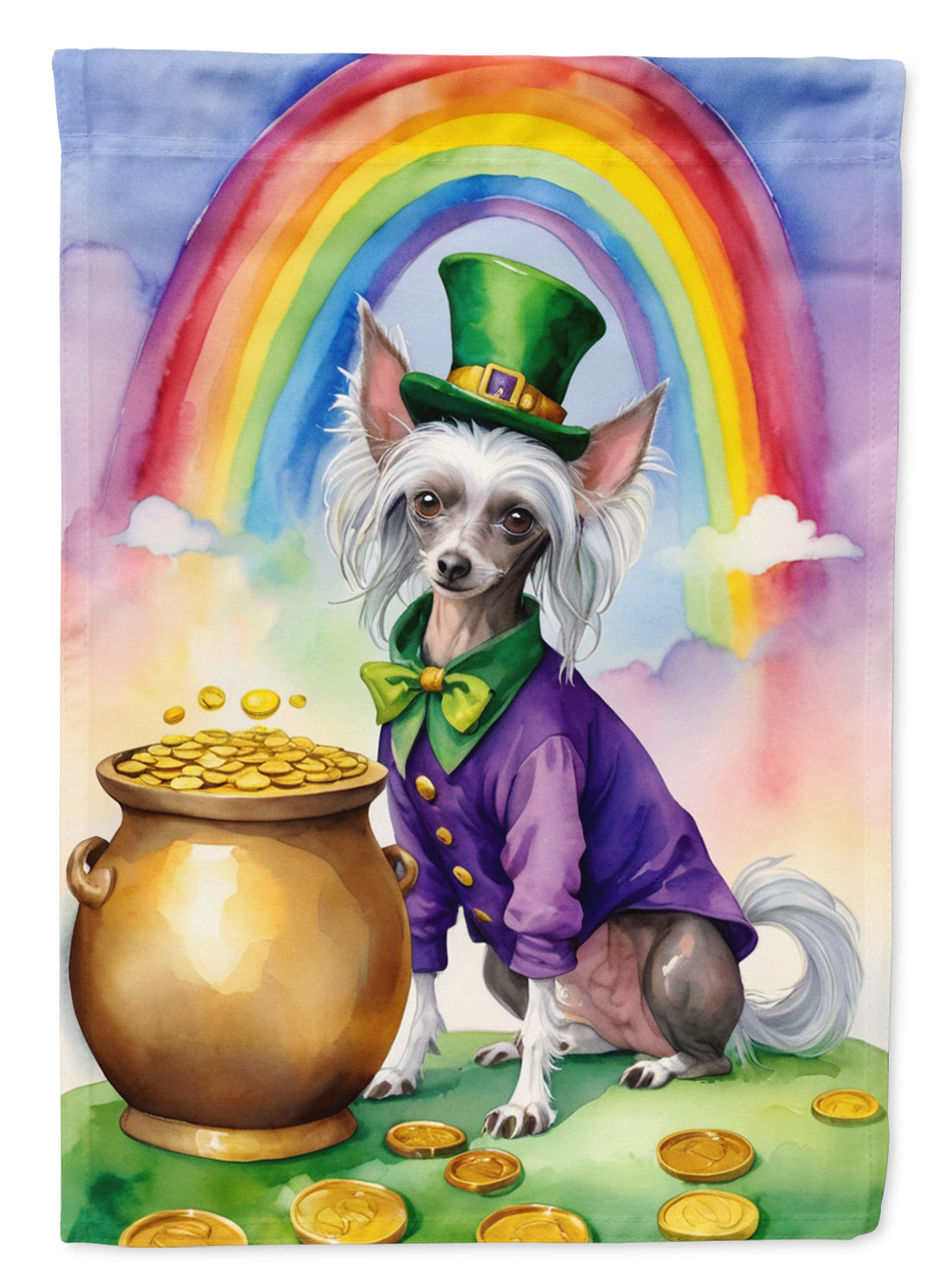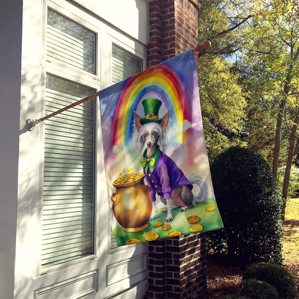 House Flag featuring breed specific Chinese Crested artwork. Celebrate St Patrick's Day with this St Patrick's Day Large Flag. Presenting our Heavy Duty Polyester House Size Decorative Sleeve Pole Flag, a vibrant addition to enhance the aesthetic appeal of your home. This large decorative flag, measuring approximately 28 x 40 inches, offers ample coverage and visibility. Each flag is meticulously sewn and made individually, ensuring a unique piece that may slightly vary in size. It's a sleeve pole flag, designed to fit a standard decorative flag pole effortlessly. Please note that the flag pole and bracket are not included and should be purchased separately. What sets our flag apart is its dual-sided print. The design is mirrored on both sides of the fabric, allowing for uniform visibility regardless of the angle. Printed in full color, our flag showcases vibrant hues that truly stand out. To ensure lasting vibrancy and durability, the dyes are heat-set into the fabric. This ensures your flag remains bright and captivating through various weather conditions. Elevate the look of your home with our Heavy Duty Polyester House Size Decorative Sleeve Pole Flag!