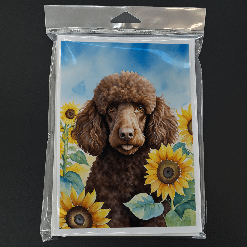 Chocolate Poodle in Sunflowers Greeting Cards – Pack of 8
