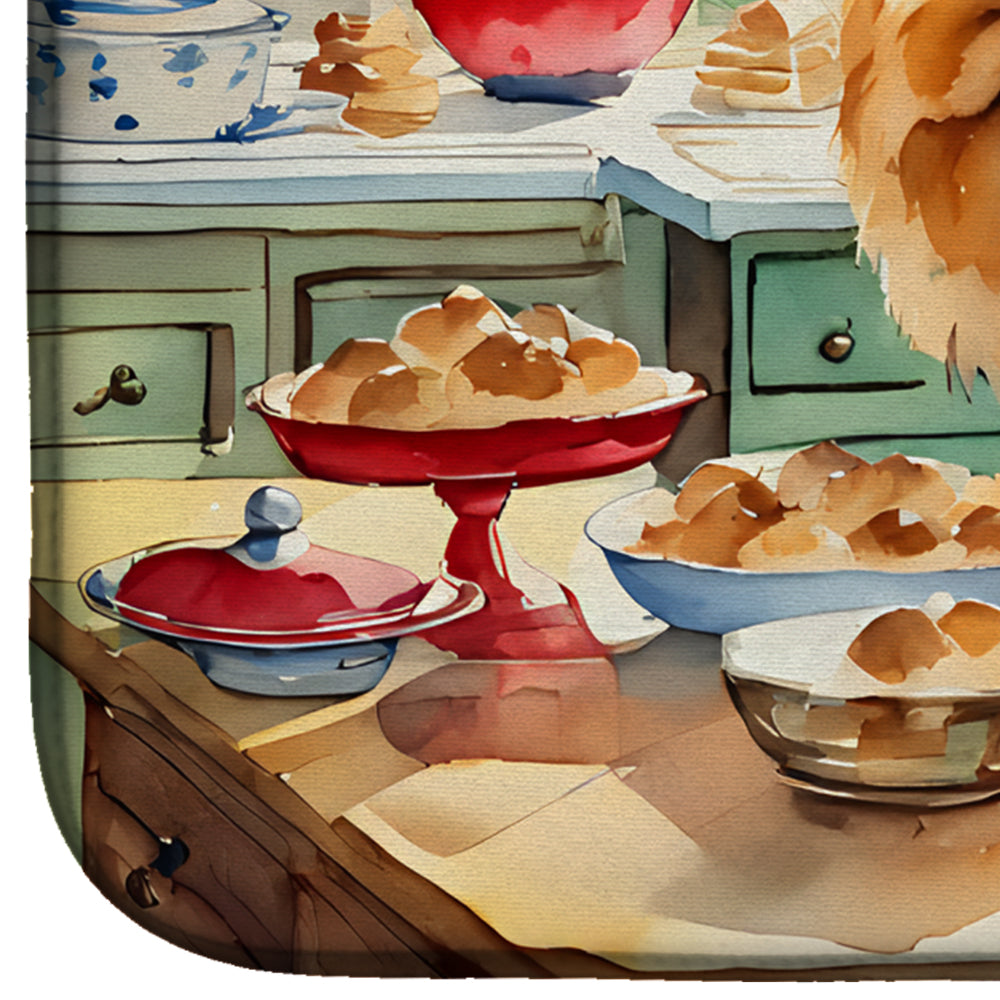 Dish Drying Mat featuring breed specific Chow Chow artwork. Celebrate Christmas with this Christmas Dish Drying Mat. Say goodbye to messy countertops and soggy dish towels with our innovative dish drying mat. Our high-quality dish drying pad is designed to keep your countertops dry while offering a stylish and efficient solution. Whether you're air drying dishes, glasses, stemware, silverware, pots, pans, bottles, or even fruits and vegetables, our dish mat is the perfect choice. The 14 inches x 22 inches size fits most counters and dish drying racks, and the non-slip design ensures stability. Made with water-absorbent polyester and a polyurethane foam insert, our dish drying mat is not only functional but also durable. It's machine washable and printed in the USA for long-lasting use. The beautiful artwork adds flair to your kitchen decor, making it a perfect housewarming gift or present for any occasion. Upgrade your kitchen experience with our absorbent and versatile dish drying mat.