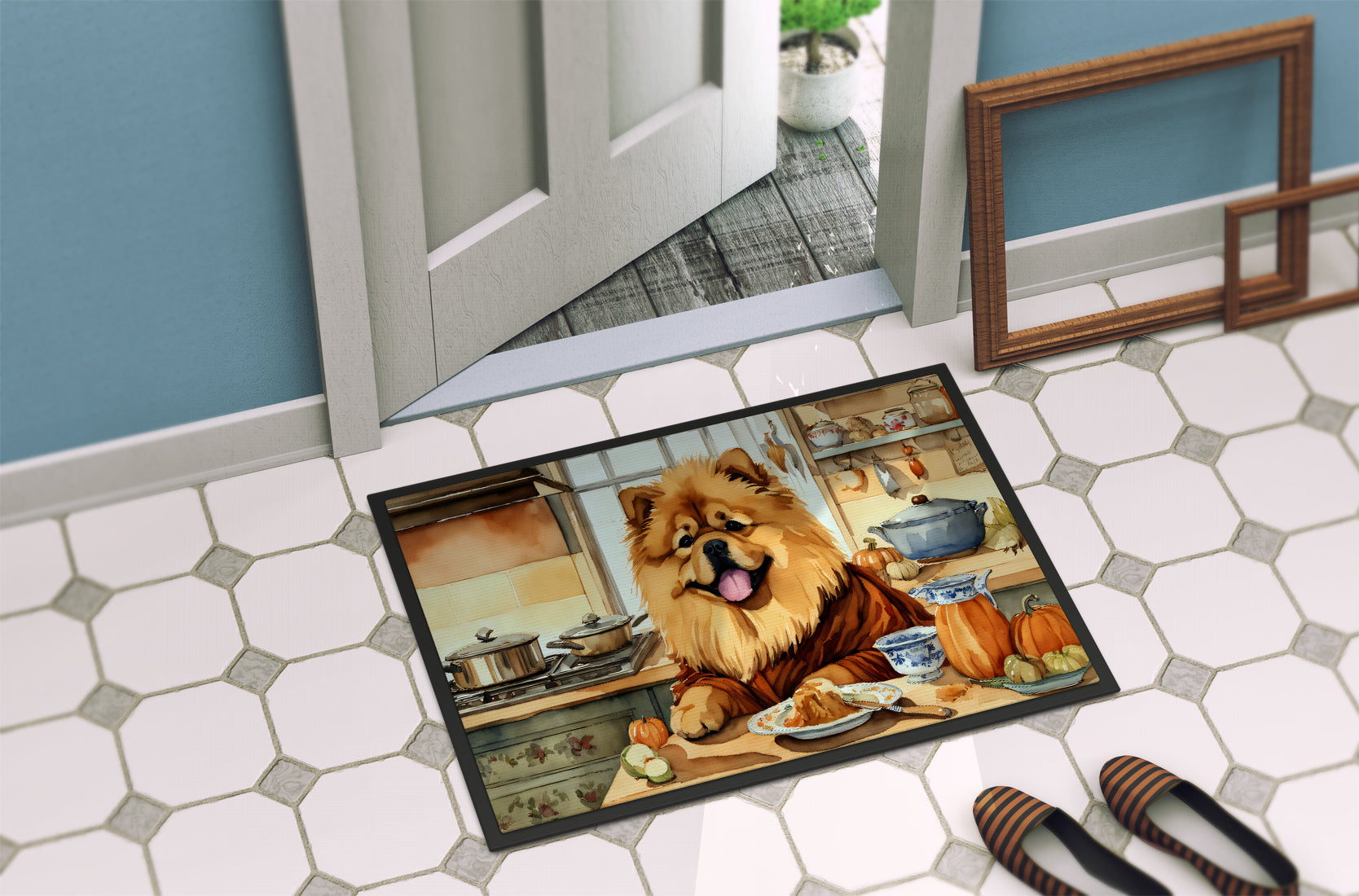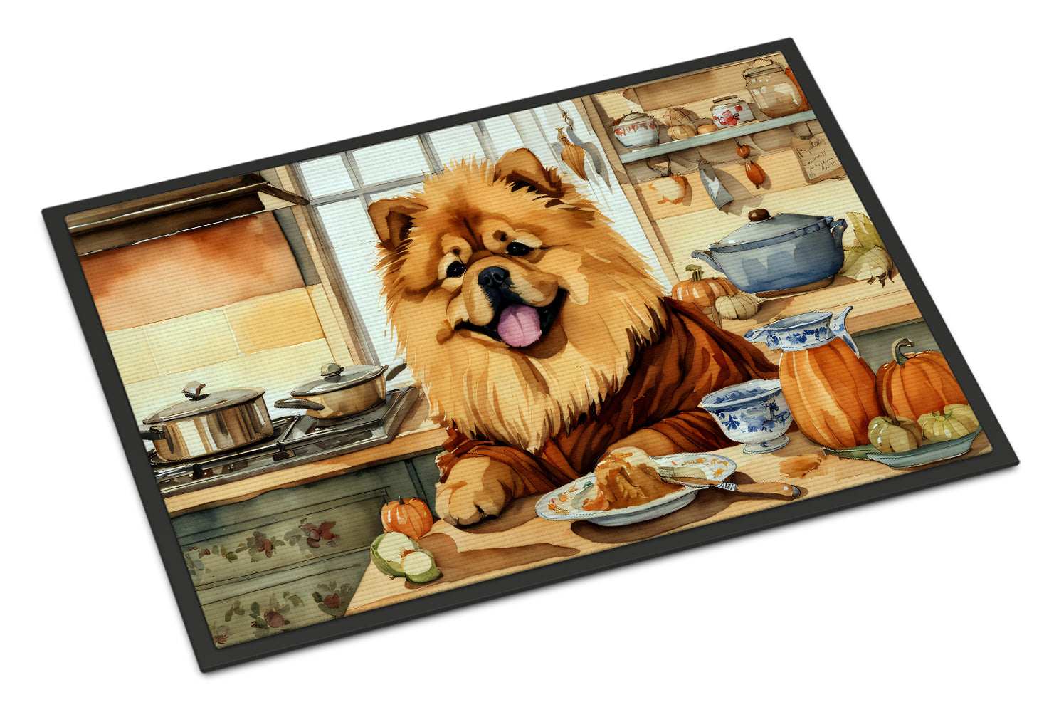 Doormat featuring breed specific Chow Chow artwork. Celebrate Halloween with this Halloween Doormat. Welcome your guests in style with our Artwork Door Mat, designed to withstand almost any weather condition. This mat, measuring approximately 24 by 36 inches, is held together by durable black binding tape. Its top layer, composed of polyester felt, is dyed with the eye-catching image you see on the mat. A few layers below provide the mat with stability, while its rubber bottom is stamped to help prevent slipping and ensures safety. Our mat works wonderfully as both an indoor or outdoor door mat. For cleaning, simply hose it off with water or use a power washer - no need for any cleaner that produces suds. Avoid scrubbing with a brush, instead, opt for the vacuum on floor setting. Designed manufactured and printed in the USA, this mat is a perfect addition to your porch, outdoor kitchen, entryway, or any indoor space. Its unique design makes it a charming decorative rug that greets your guests and adds a stylish touch to your home decor.