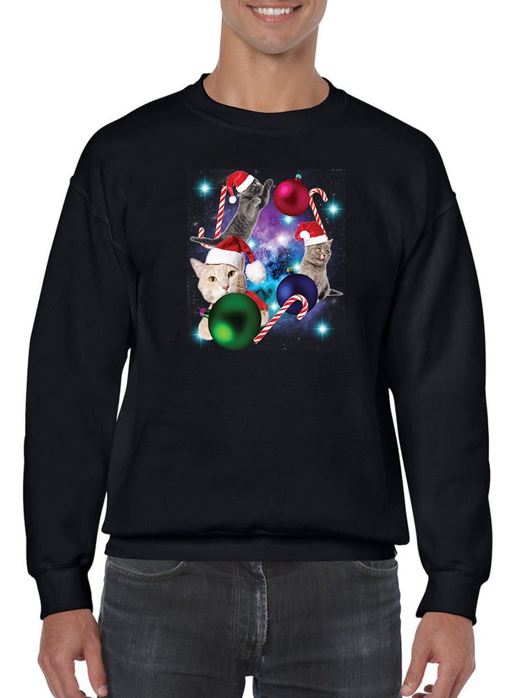 Christmas Cat Galaxy Sweatshirt -SmartPrintsInk Designs