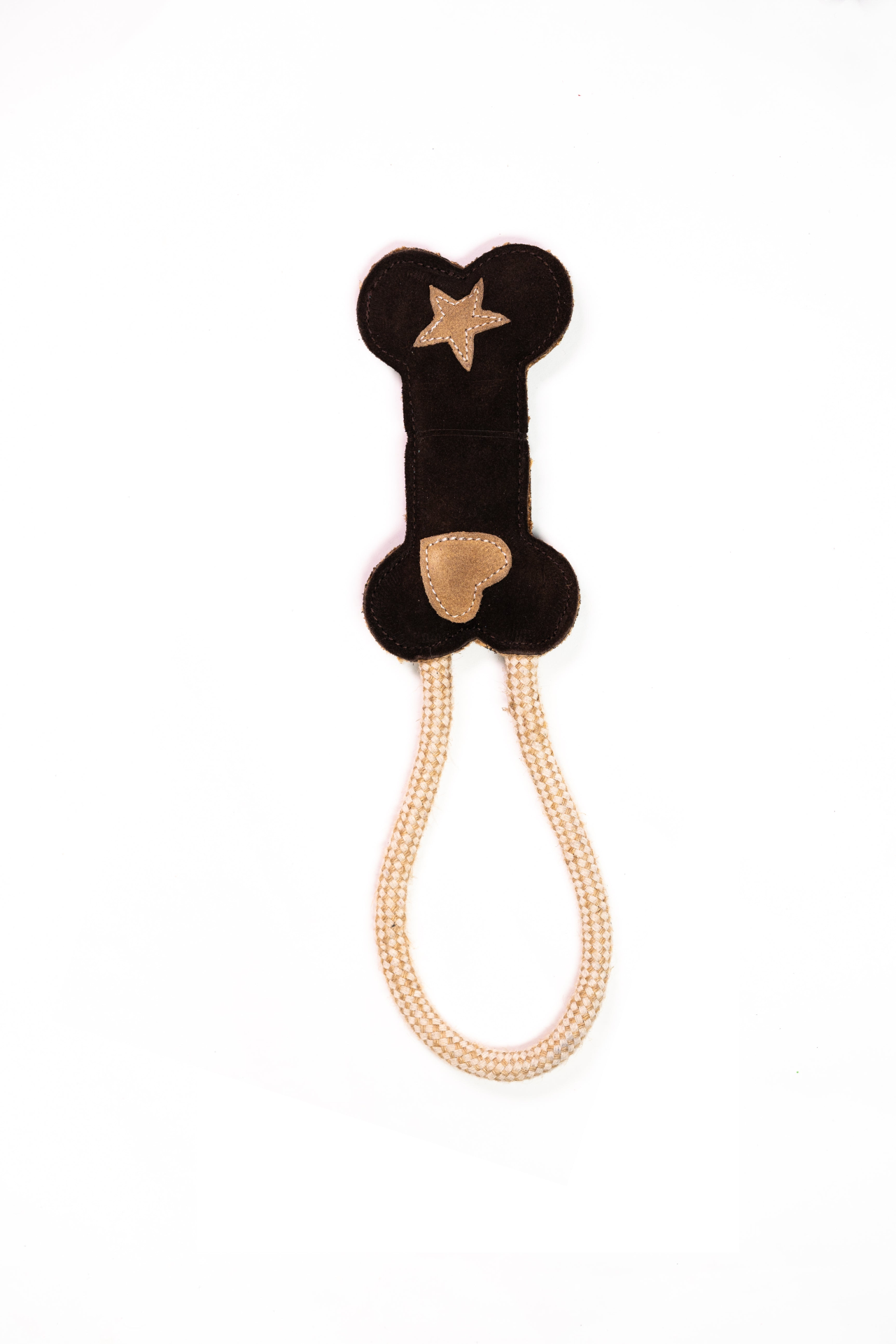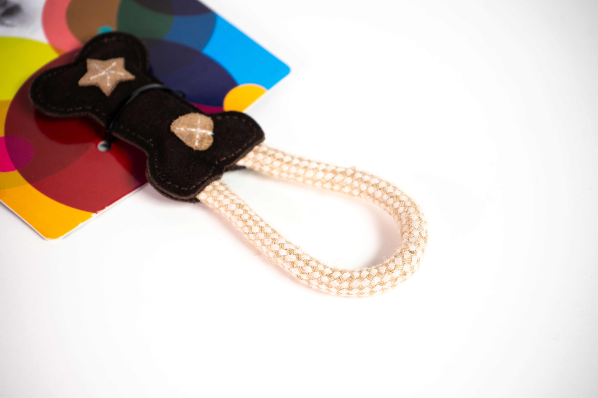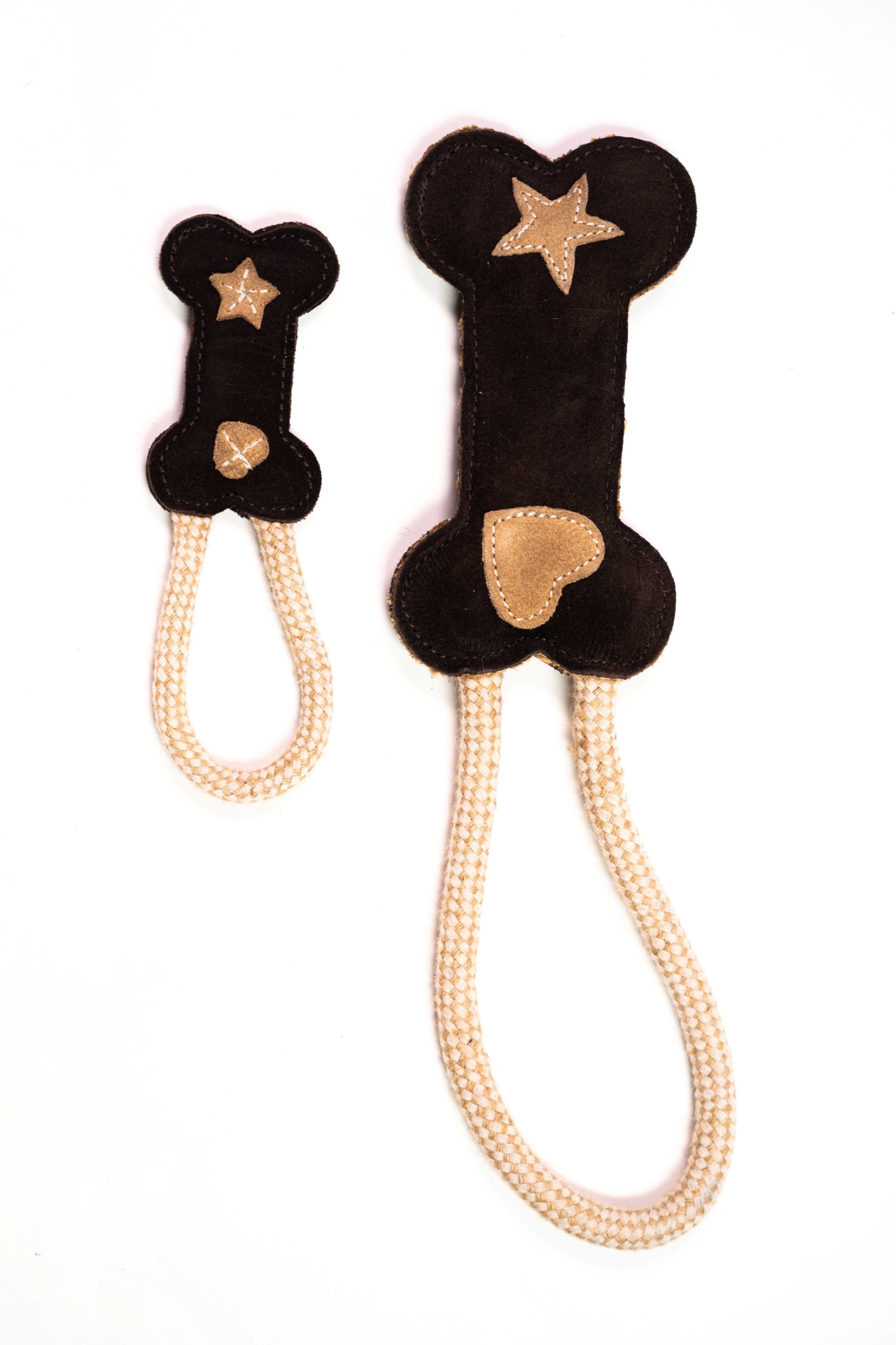 Toss, tug, play or train with these soft and durable handmade Bone design dog toys. Made of Natural Jute, cotton and suede and designed for your dog’s ultimate stimulation, interaction and play. Promotes healthy exercise and may help alleviate stress and anxiety in some dogs, Vegetable- based dyes.
