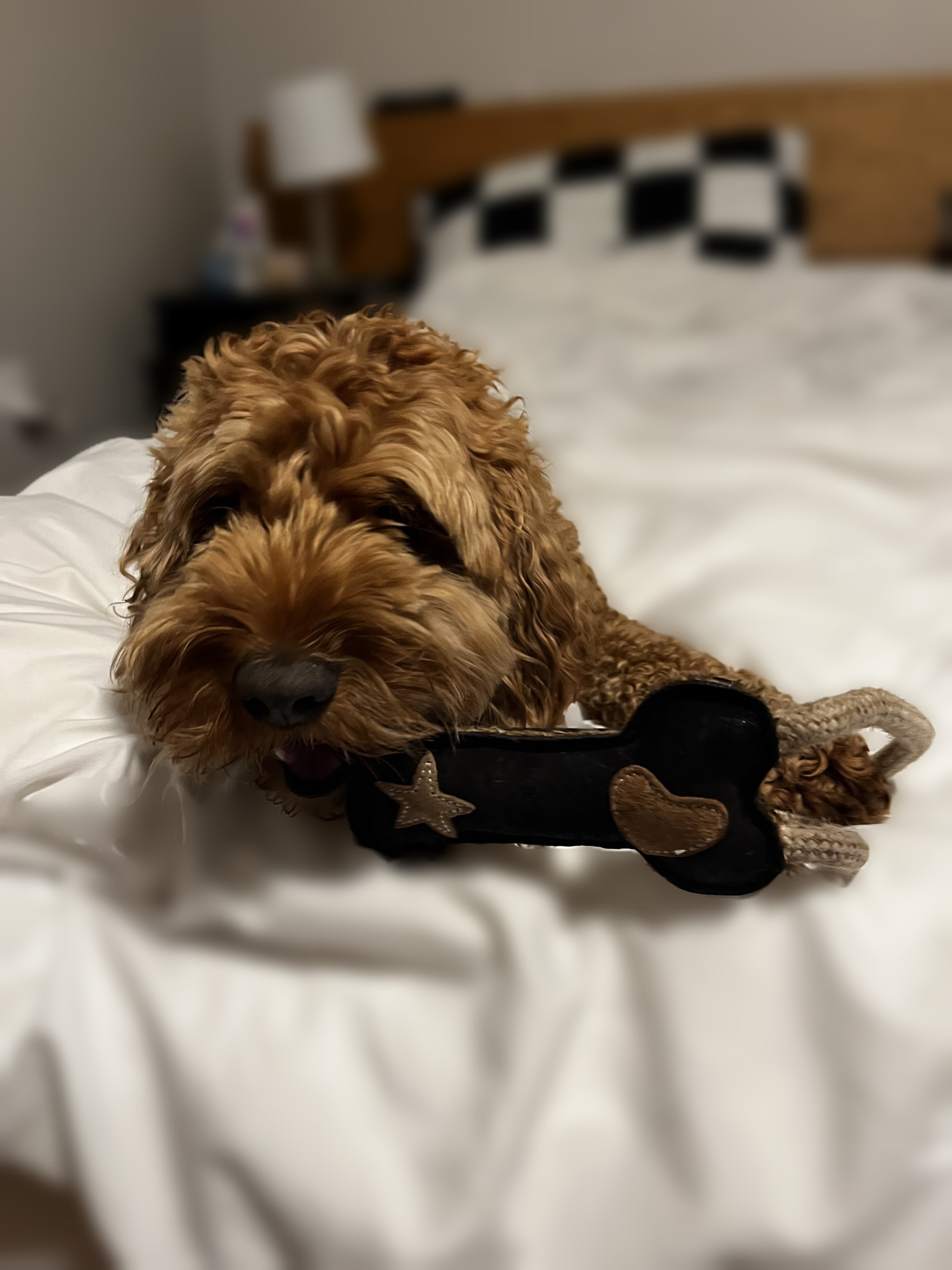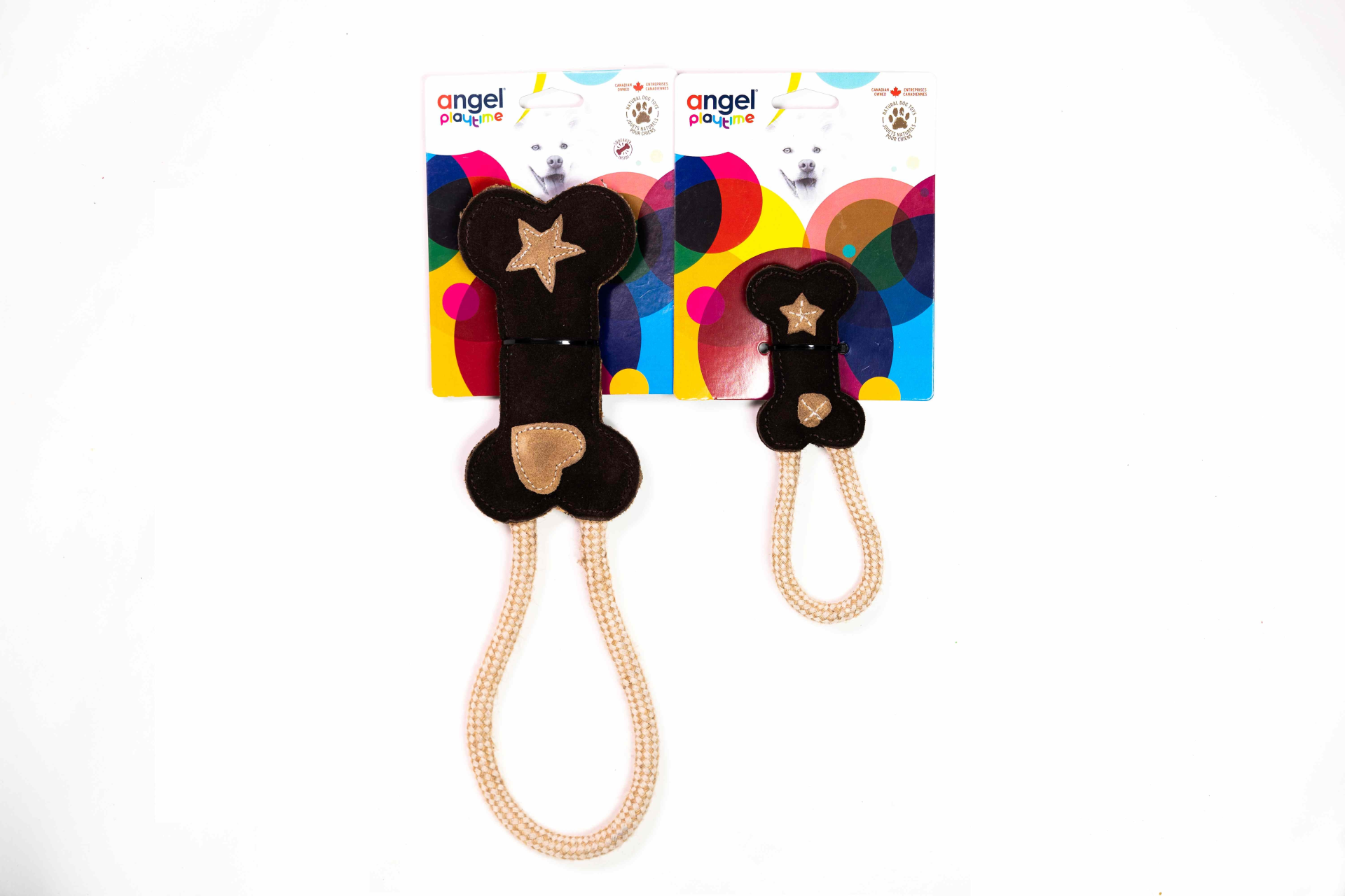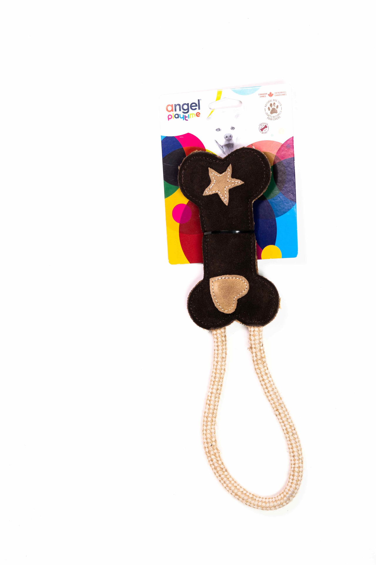 Toss, tug, play or train with these soft and durable handmade Bone design dog toys. Made of Natural Jute, cotton and suede and designed for your dog’s ultimate stimulation, interaction and play. Promotes healthy exercise and may help alleviate stress and anxiety in some dogs, Vegetable- based dyes.