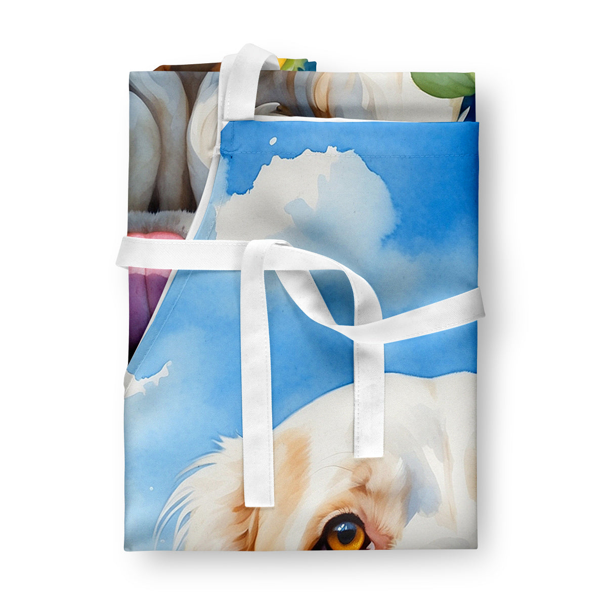 Apron featuring breed specific Clumber Spaniel artwork. Elevate your cooking, baking, and grilling experiences with our versatile Kitchen or BBQ Apron. This Bib Style apron isn't just limited to culinary activities - it also serves as an excellent baking apron, artist apron, server apron, gardening apron, or even a dog grooming apron. The apron showcases vibrant full-color artwork contributed by one of our talented artists, bringing a dash of style to your daily tasks. With dimensions of approximately 27"W x 30"H, it provides ample coverage to protect your clothing from spills and splashes. Our apron is meticulously crafted from 100% Ultra Spun Polyester, known for its durability and lightweight nature. The apron comes with white tie straps, ensuring a comfortable and adjustable fit for all. It's a perfect choice for kitchen apron enthusiasts, whether you are a woman or a man. Designed for easy maintenance, this apron is fully machine washable. The quick-drying polyester material actively reduces staining, keeping your apron looking fresh and new for longer. Our beautifully designed apron isn't just a functional kitchen accessory - it's a fashion statement in the culinary world!