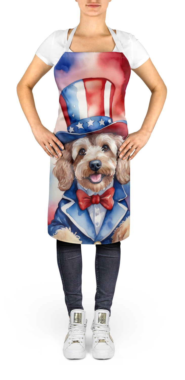 Apron featuring breed specific Cockapoo artwork. Elevate your cooking, baking, and grilling experiences with our versatile Kitchen or BBQ Apron. This Bib Style apron isn't just limited to culinary activities - it also serves as an excellent baking apron, artist apron, server apron, gardening apron, or even a dog grooming apron. The apron showcases vibrant full-color artwork contributed by one of our talented artists, bringing a dash of style to your daily tasks. With dimensions of approximately 27"W x 30"H, it provides ample coverage to protect your clothing from spills and splashes. Our apron is meticulously crafted from 100% Ultra Spun Polyester, known for its durability and lightweight nature. The apron comes with white tie straps, ensuring a comfortable and adjustable fit for all. It's a perfect choice for kitchen apron enthusiasts, whether you are a woman or a man. Designed for easy maintenance, this apron is fully machine washable. The quick-drying polyester material actively reduces staining, keeping your apron looking fresh and new for longer. Our beautifully designed apron isn't just a functional kitchen accessory - it's a fashion statement in the culinary world!