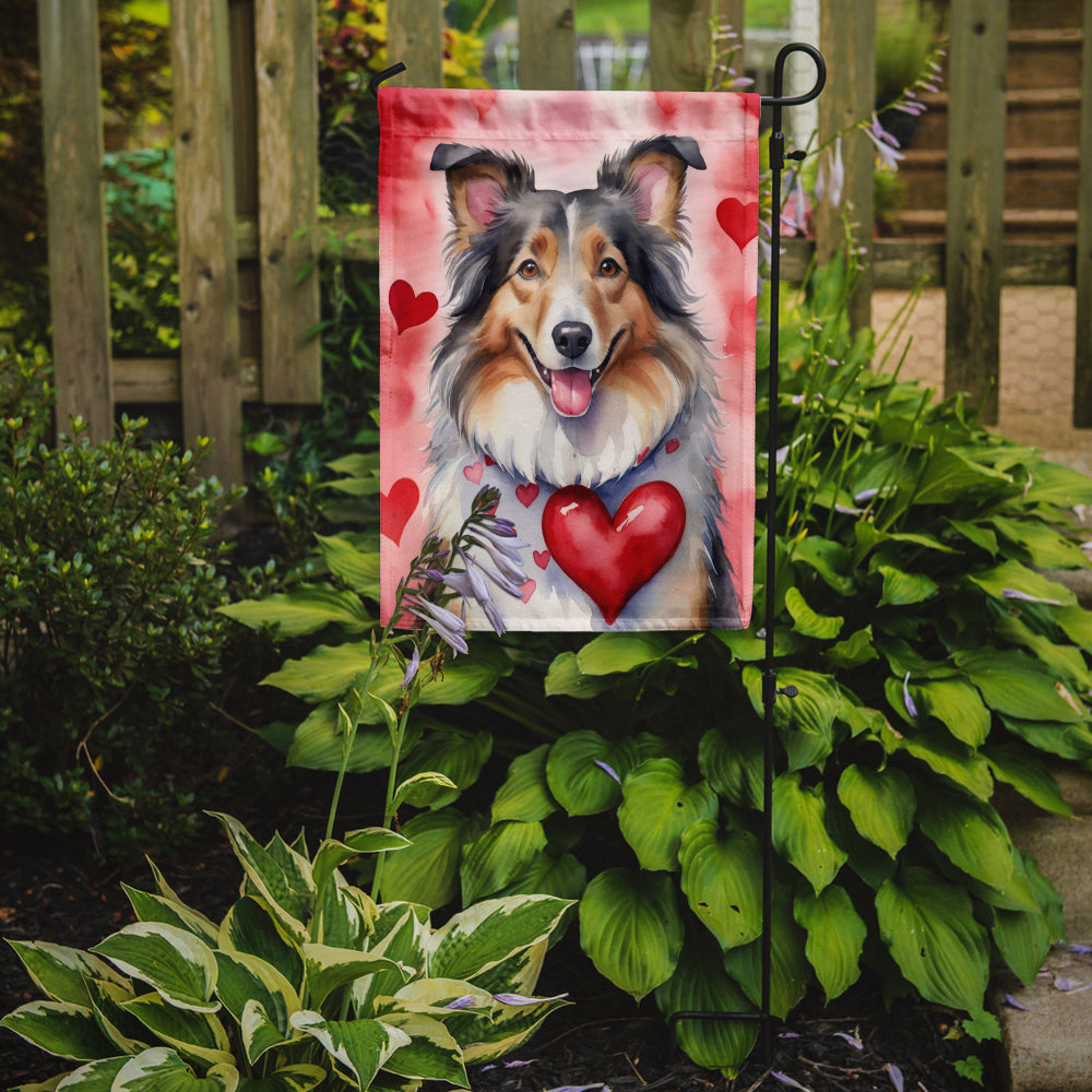 Garden Flag featuring breed specific Collie artwork. Celebrate Valentine's Day with this Valentine's Day Garden Flag. Enhance the beauty of your garden, patio, or yard with Caroline's Treasures Decorative Garden Flag, proudly made in the USA. Crafted from two pieces of thick, double-sided polyester fabric, this 2-ply garden flag is designed to withstand various weather conditions, making it water-resistant and weatherproof. Featuring correctly readable words on both sides, this garden flag offers a delightful visual experience from any angle. With its heavier weight, it stands out among other garden flags, ensuring stability and durability even in wind, rain, and snow. Measuring approximately 11 1/4 inches by 15 1/2 inches, this flag allows you to personalize your outdoor decor. It comes with a 1 1/2-inch sleeve sewn in, allowing easy attachment to any standard garden flag stand or garden size porch hanger (sold separately). Make a statement in your outdoor space with Caroline's Treasures Decorative Garden Flag, a vibrant and high-quality flag that adds color and personality to your surroundings. Proudly made in the USA, it's a symbol of quality craftsmanship and attention to detail.