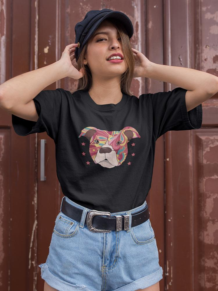 Colorful Dog Face T-shirt -SmartPrintsInk Designs - 2XL / Female / Black is backordered and will ship as soon as it is back in stock.
