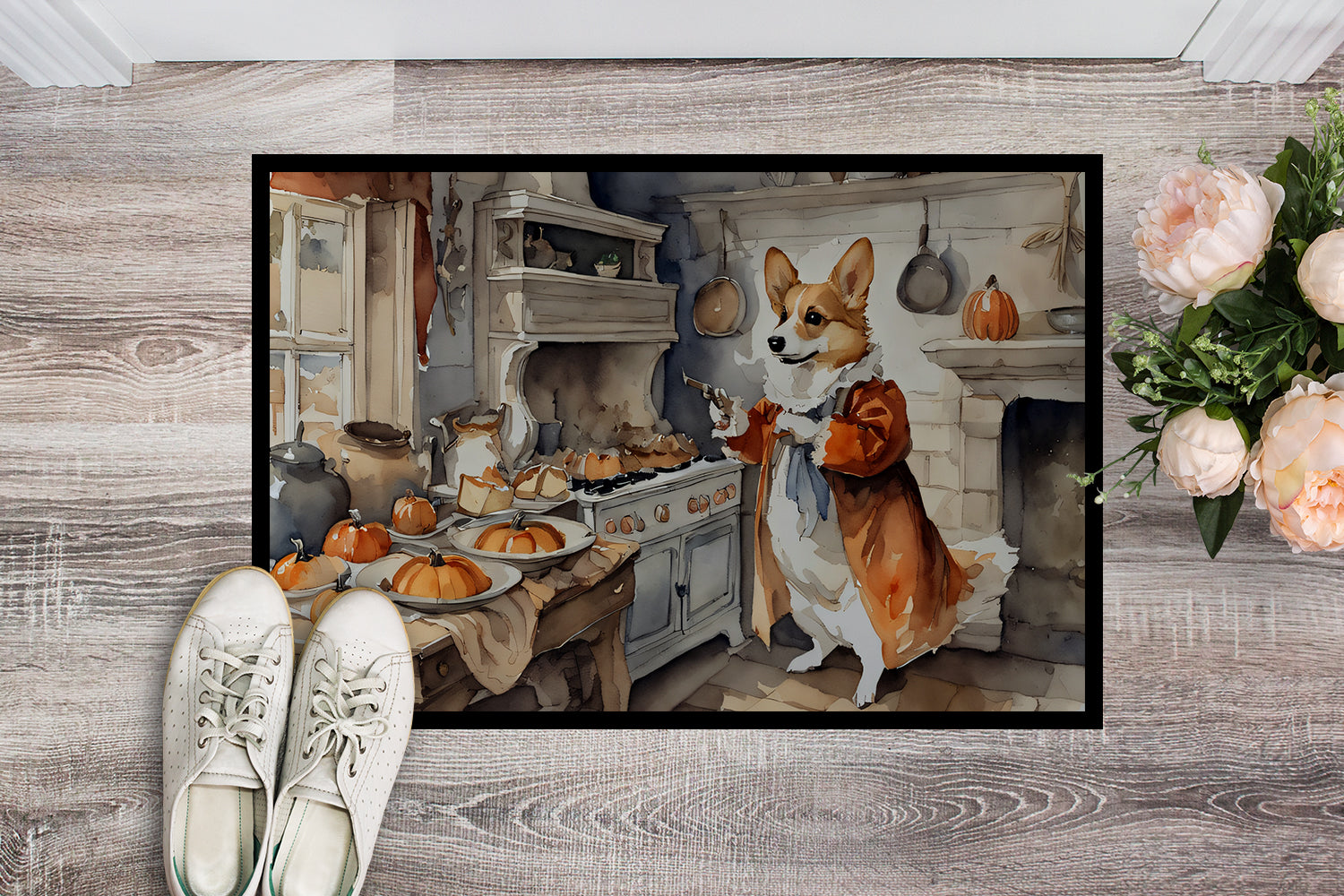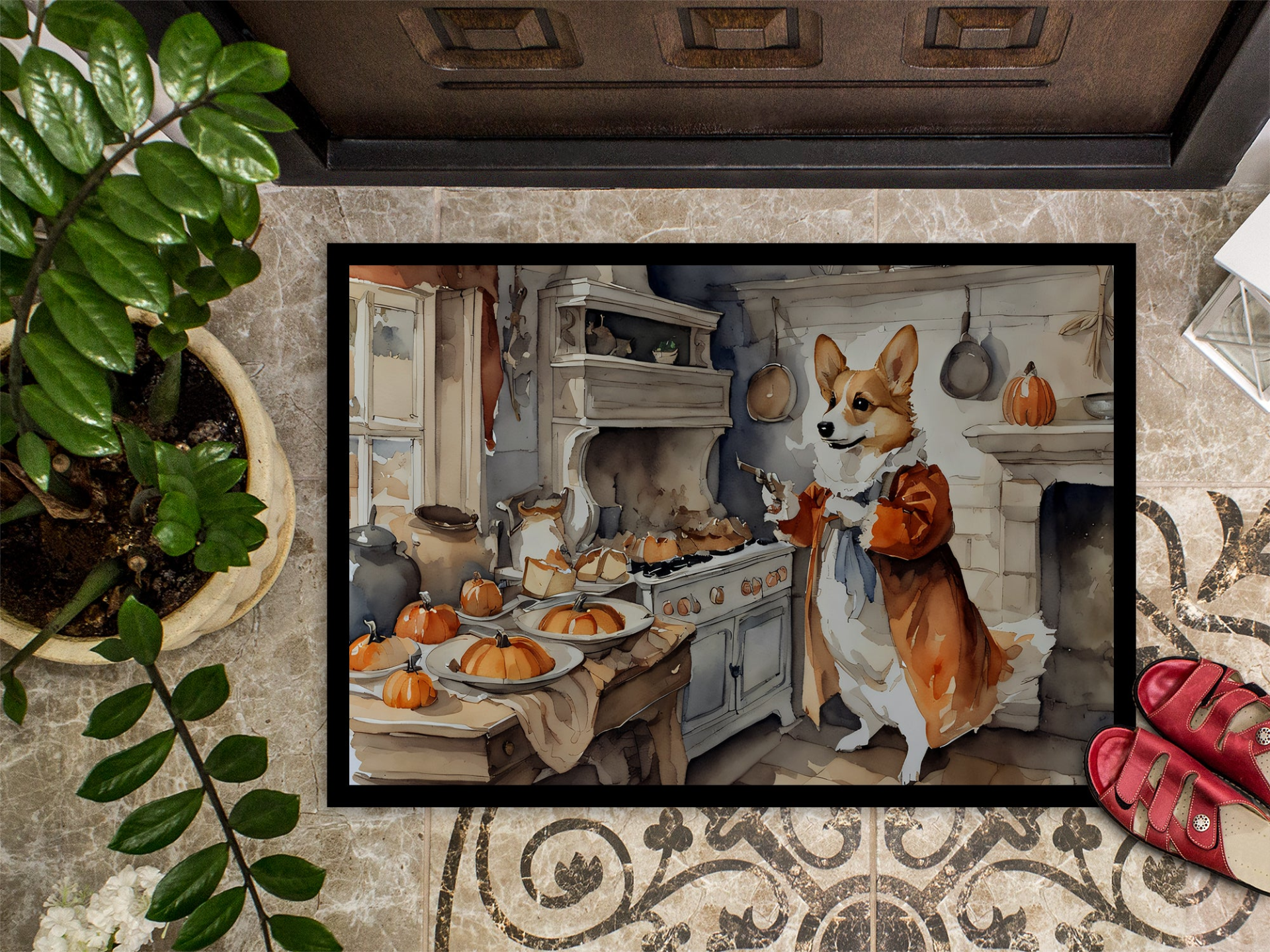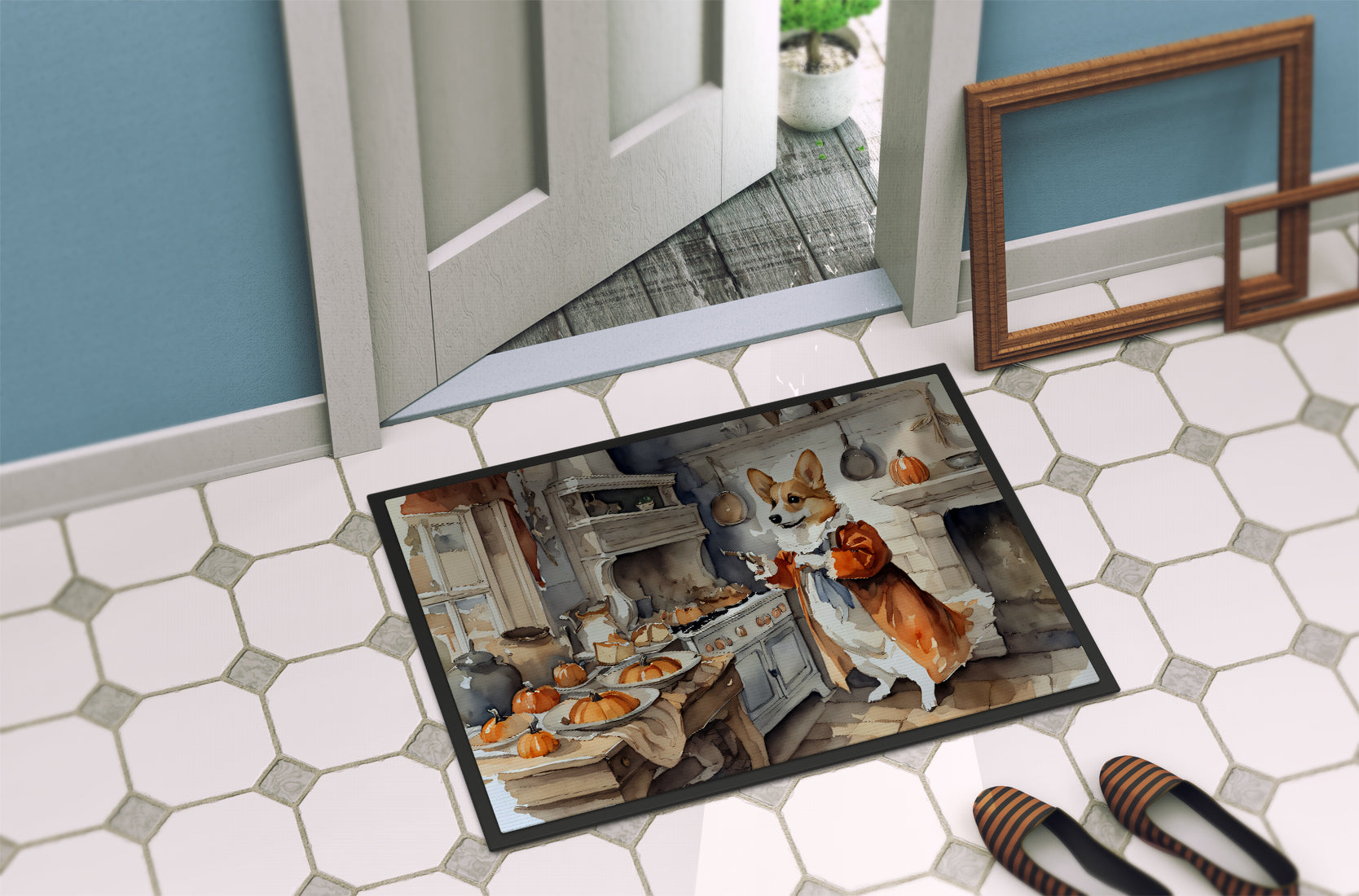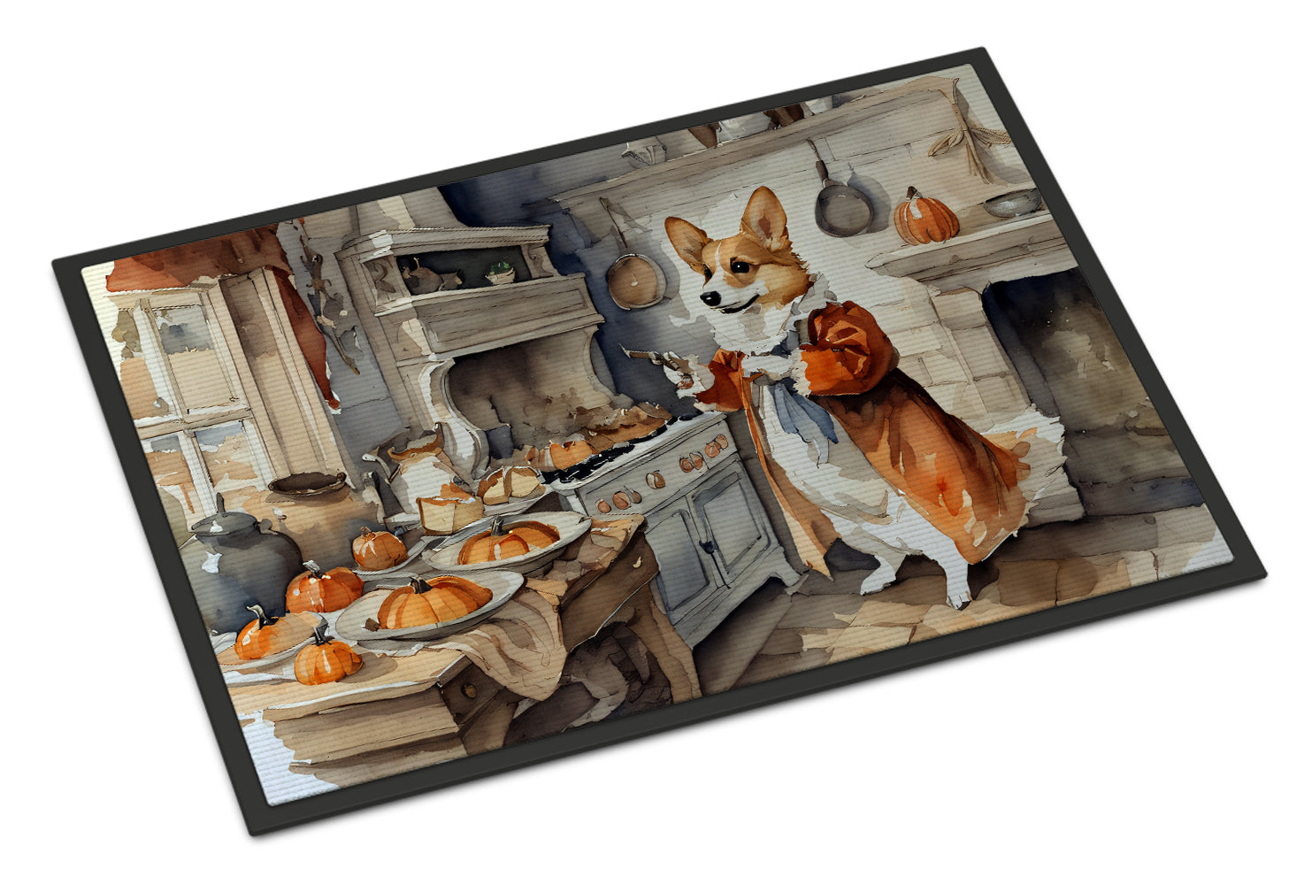 Doormat featuring breed specific Corgi artwork. Celebrate Halloween with this Halloween Doormat. Welcome your guests in style with our Artwork Door Mat, designed to withstand almost any weather condition. This mat, measuring approximately 24 by 36 inches, is held together by durable black binding tape. Its top layer, composed of polyester felt, is dyed with the eye-catching image you see on the mat. A few layers below provide the mat with stability, while its rubber bottom is stamped to help prevent slipping and ensures safety. Our mat works wonderfully as both an indoor or outdoor door mat. For cleaning, simply hose it off with water or use a power washer - no need for any cleaner that produces suds. Avoid scrubbing with a brush, instead, opt for the vacuum on floor setting. Designed manufactured and printed in the USA, this mat is a perfect addition to your porch, outdoor kitchen, entryway, or any indoor space. Its unique design makes it a charming decorative rug that greets your guests and adds a stylish touch to your home decor.