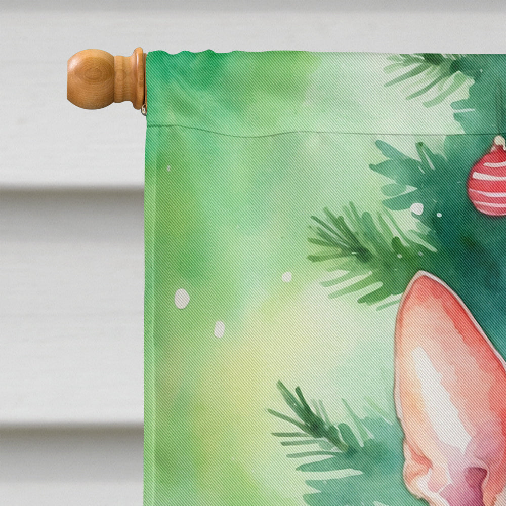 House Flag featuring breed specific Cornish Rex artwork. Celebrate Christmas with this Christmas Large Flag. Presenting our Heavy Duty Polyester House Size Decorative Sleeve Pole Flag, a vibrant addition to enhance the aesthetic appeal of your home. This large decorative flag, measuring approximately 28 x 40 inches, offers ample coverage and visibility. Each flag is meticulously sewn and made individually, ensuring a unique piece that may slightly vary in size. It's a sleeve pole flag, designed to fit a standard decorative flag pole effortlessly. Please note that the flag pole and bracket are not included and should be purchased separately. What sets our flag apart is its dual-sided print. The design is mirrored on both sides of the fabric, allowing for uniform visibility regardless of the angle. Printed in full color, our flag showcases vibrant hues that truly stand out. To ensure lasting vibrancy and durability, the dyes are heat-set into the fabric. This ensures your flag remains bright and captivating through various weather conditions. Elevate the look of your home with our Heavy Duty Polyester House Size Decorative Sleeve Pole Flag!