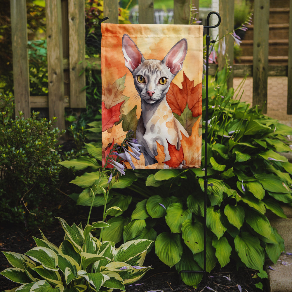 Garden Flag featuring breed specific Cornish Rex artwork. Enhance the beauty of your garden, patio, or yard with Caroline's Treasures Decorative Garden Flag, proudly made in the USA. Crafted from two pieces of thick, double-sided polyester fabric, this 2-ply garden flag is designed to withstand various weather conditions, making it water-resistant and weatherproof. Featuring correctly readable words on both sides, this garden flag offers a delightful visual experience from any angle. With its heavier weight, it stands out among other garden flags, ensuring stability and durability even in wind, rain, and snow. Measuring approximately 11 1/4 inches by 15 1/2 inches, this flag allows you to personalize your outdoor decor. It comes with a 1 1/2-inch sleeve sewn in, allowing easy attachment to any standard garden flag stand or garden size porch hanger (sold separately). Make a statement in your outdoor space with Caroline's Treasures Decorative Garden Flag, a vibrant and high-quality flag that adds color and personality to your surroundings. Proudly made in the USA, it's a symbol of quality craftsmanship and attention to detail.